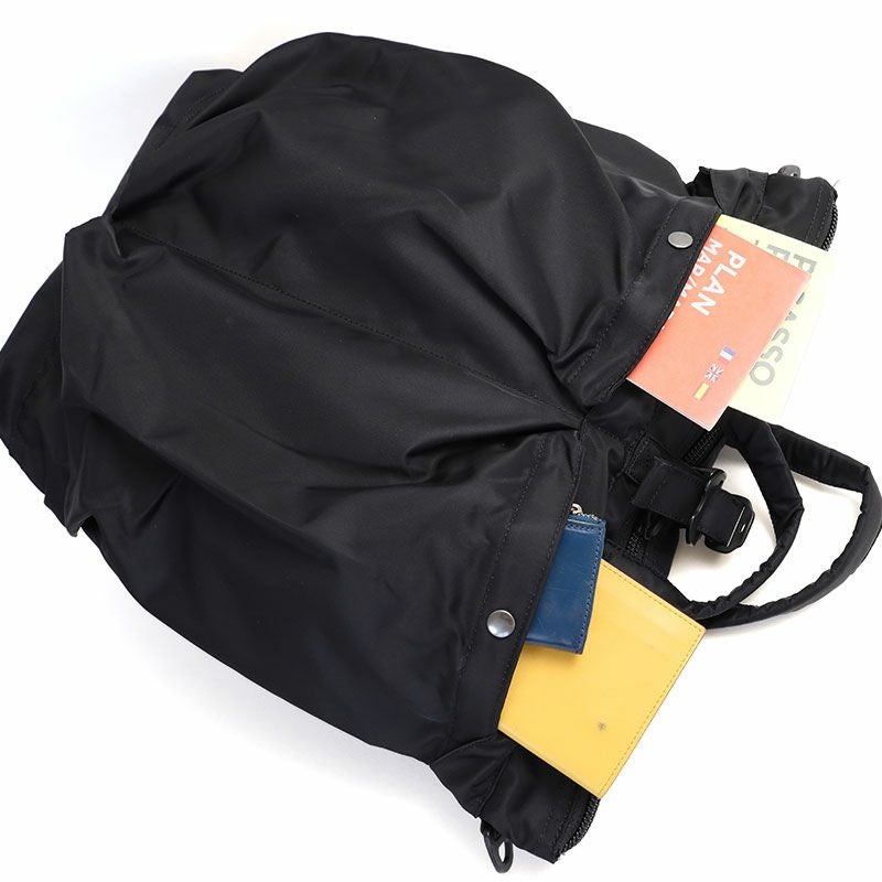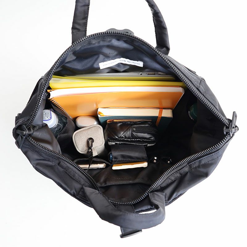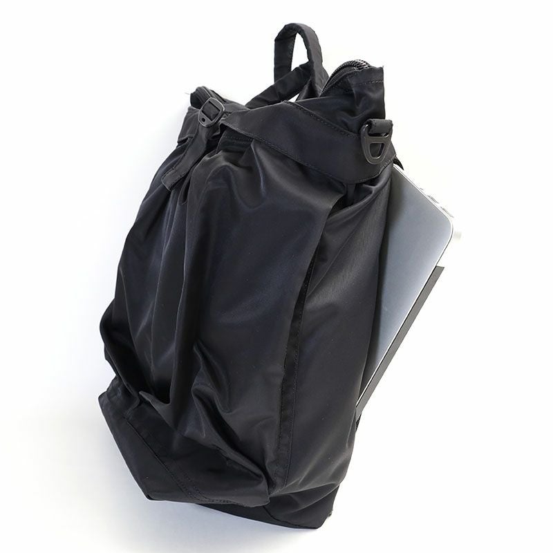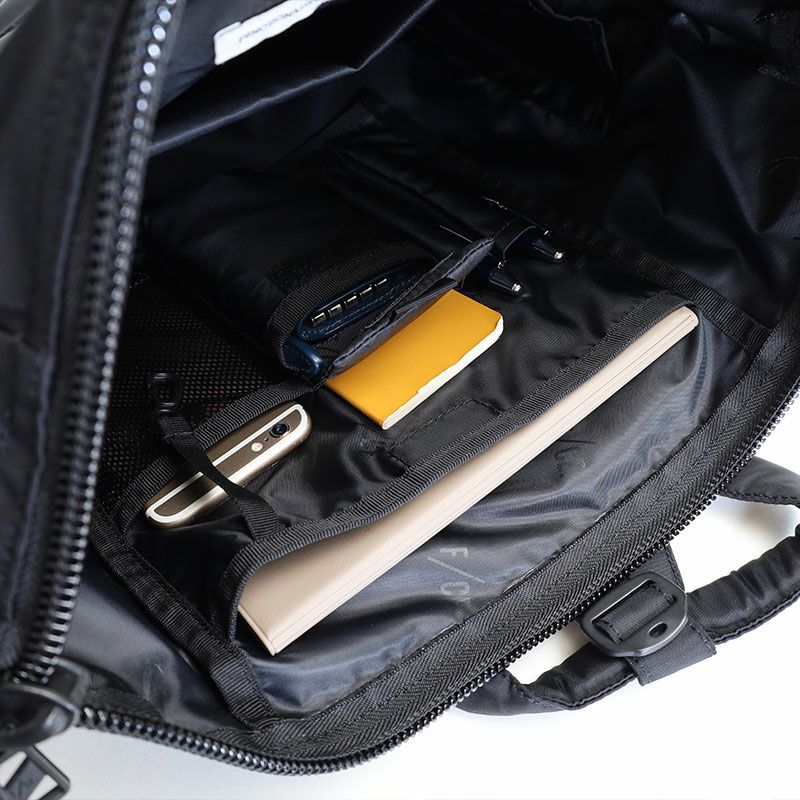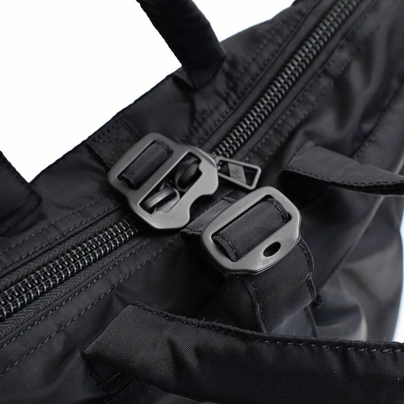 オリジナルモデルをアップデートし、F/CE.では、ショルダー、バックパック、ハンドルの3wayの仕様で提案する。タウンユースとしての設計は、15インチまでのPCケース、マルチガジェットポケットを内装に装備しており、ナイロンとリサイクルナイロンを混紡した、上品な新素材を使用。
