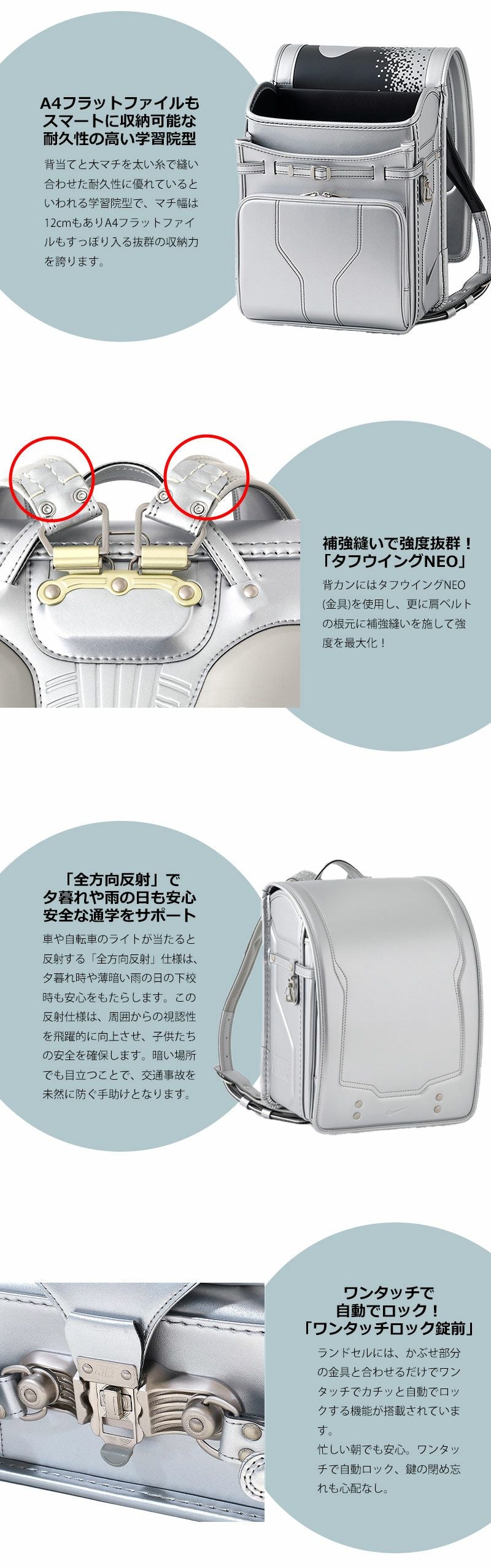 ●「全方向反射」で夕暮れや雨の日も安心安全な通学をサポート