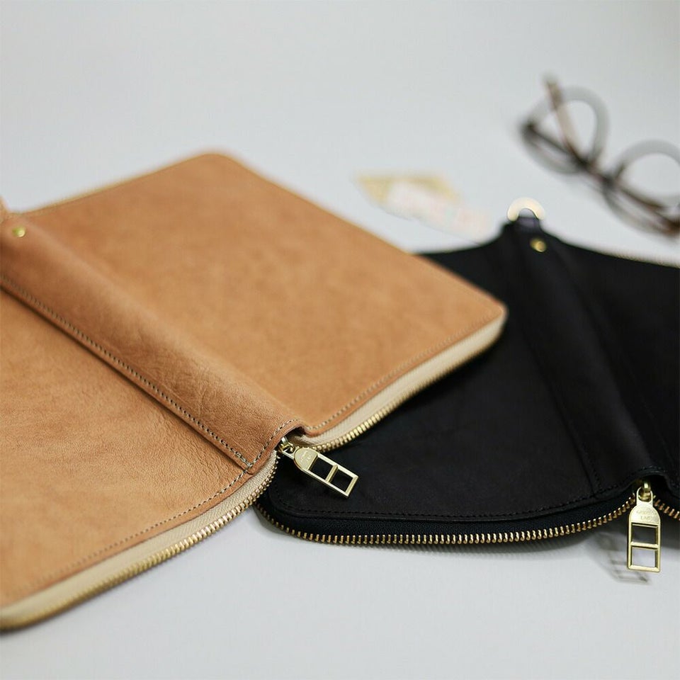 ・ラウンドファスナー仕様で中身をしっかり保護。中身が飛び出す心配がありません。