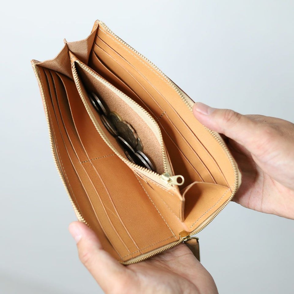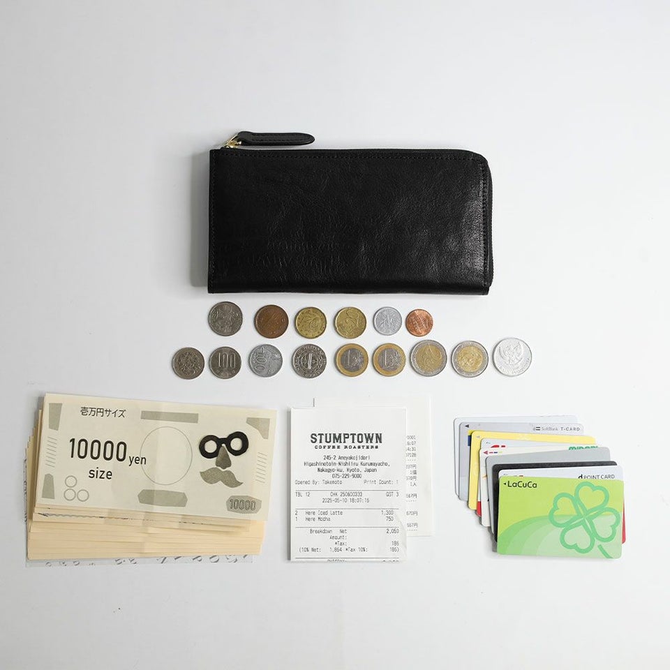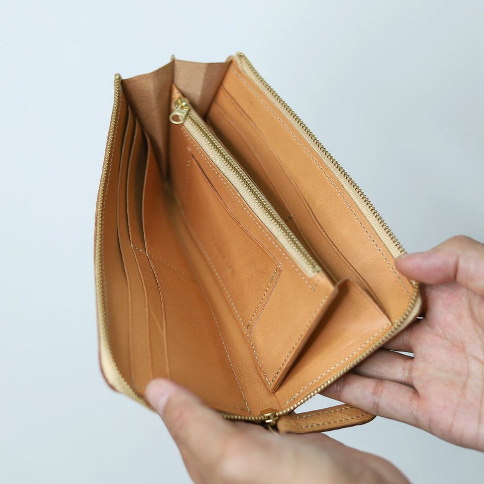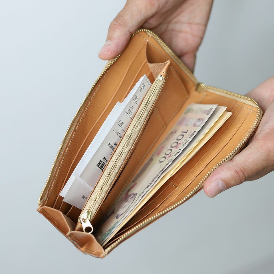 薄くて大容量が魅力のL型長財布。L字ファスナーにより財布を大きく開けることができ、中身が一目でわかりやすく、取り出しやすくなっています。