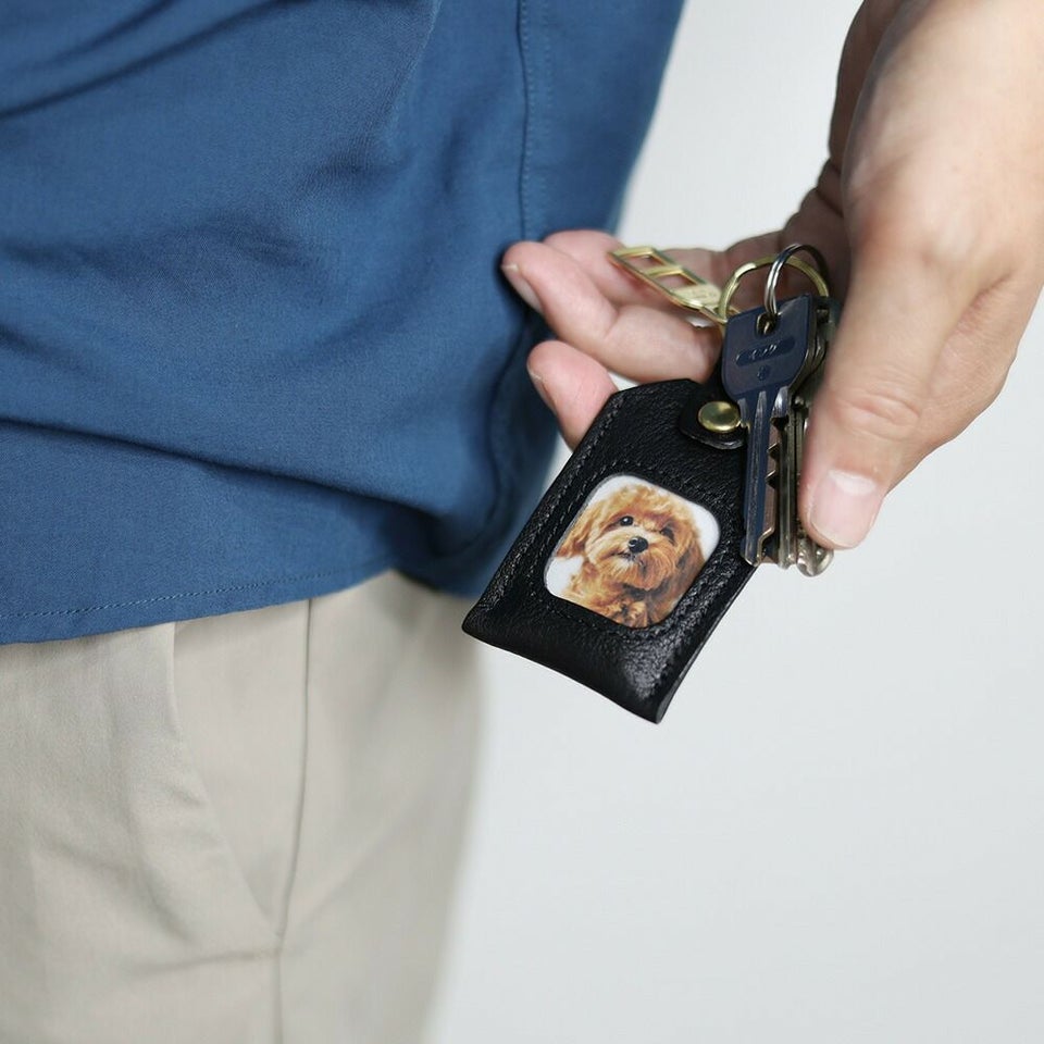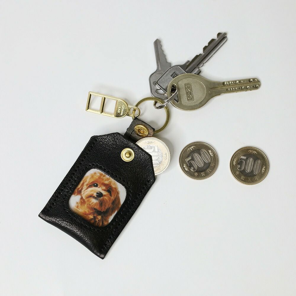 お子様、お孫様、ペット、そして推しなど、大切な写真を入れて持ち歩ける、牛革のフォトキーホルダーです。