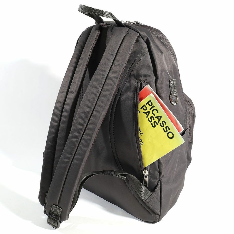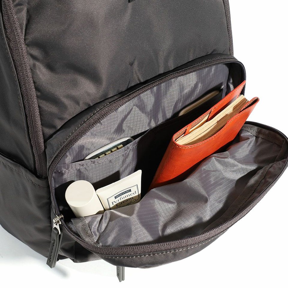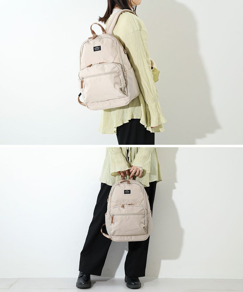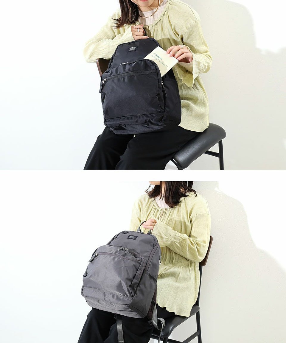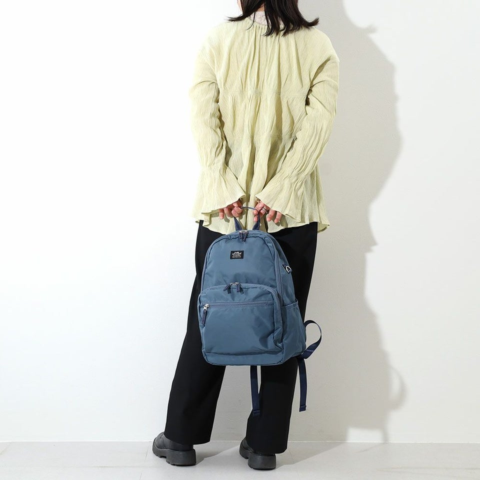 コンパクトなサイズ感で、すっきり荷物を持ち運べるTINY(タイニー)シリーズ。繊細なナイロン生地で、きれいめカジュアルな日常使いにぴったり。シルバーのプリントネームが上質なデザインポイント。スリムな見た目でしっかり容量の、多収納デイパック。小柄な方でも背中に収まるデザインです。充実の11ポケットで、上手に仕分けて収納できます。メイン内の前面側、下部にある2つのオープンポケットは、細長い折りたたみ傘などを入れてもOK!外側両サイドのDかんには、パスケースやキーホルダーなどを取り付け可能。両面撥水加工なので雨の日のお出かけも安心です。