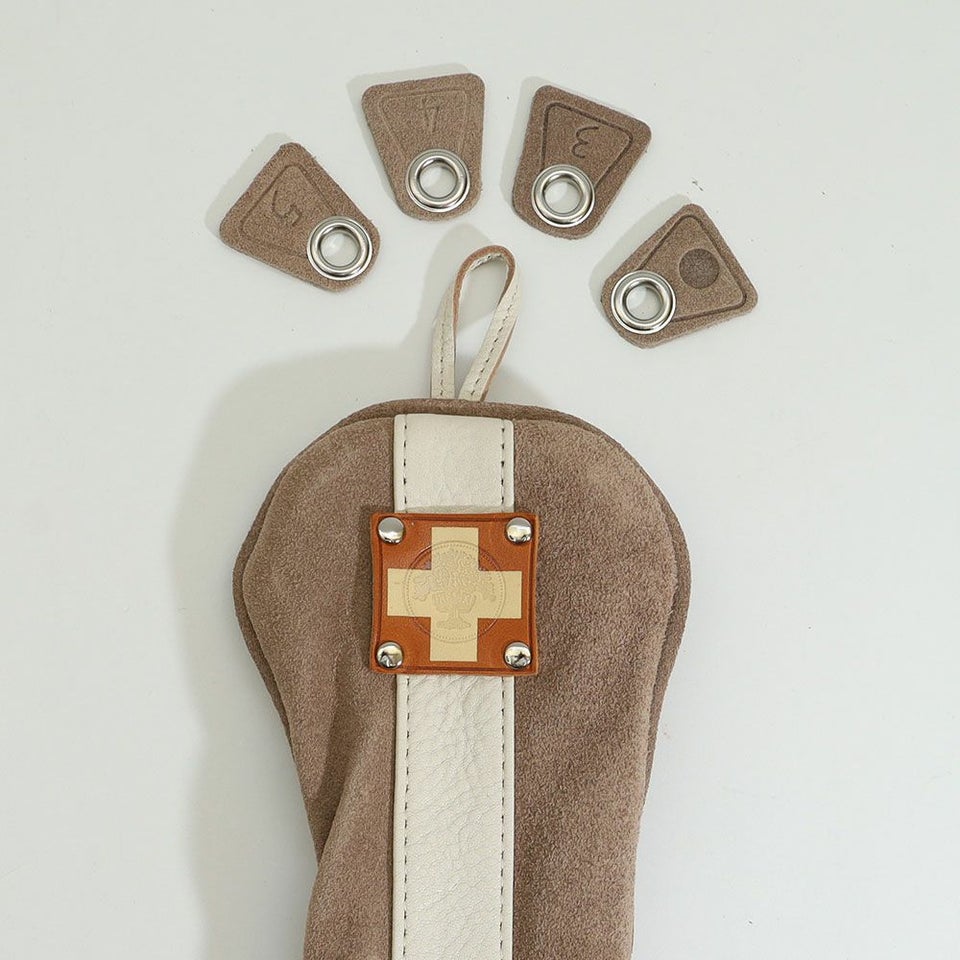 柔らかく丈夫なスエードレザーが、プレー中や移動時も大切なクラブをしっかり保護。見た目の高級感だけでなく、実用性にも優れています。