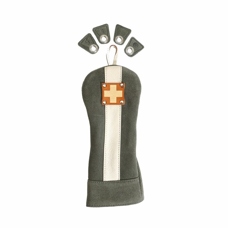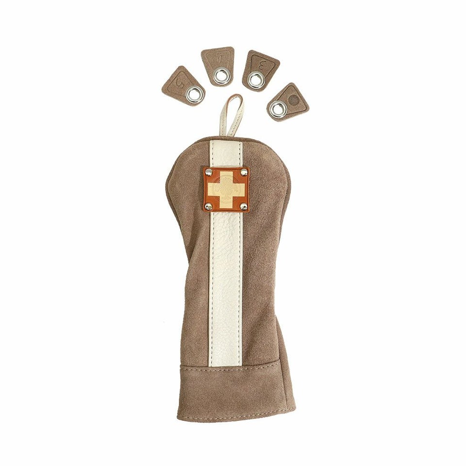 定番のレザーヘッドカバーを、上品なマット感が特徴のスエード(牛革)でデザイン。光沢レザーとは違う落ち着いた質感が、洗練された印象を与えます。