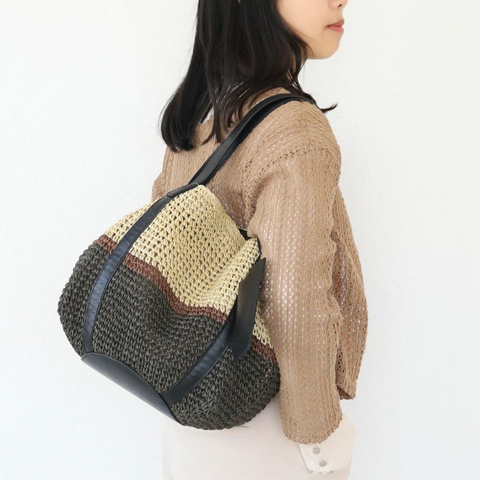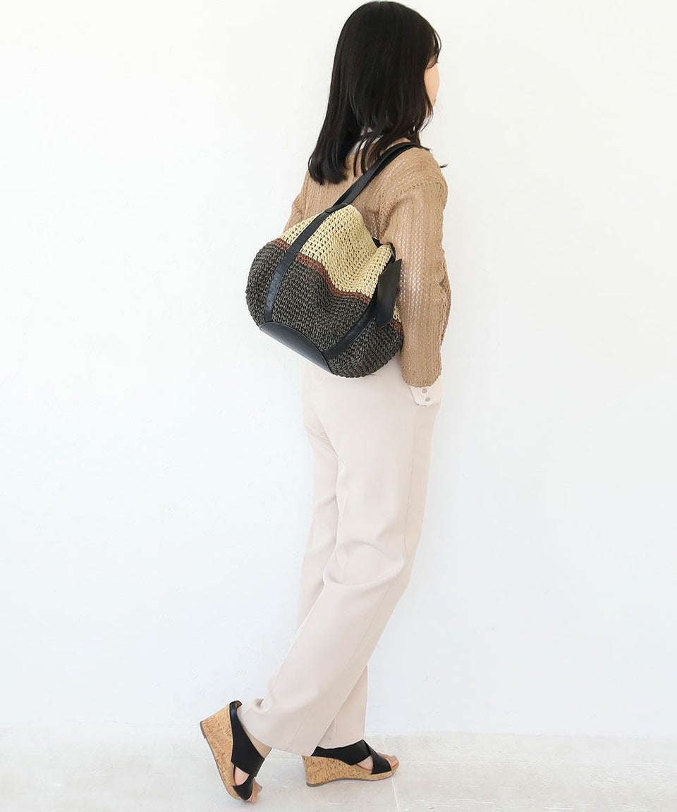 ペーパー素材を編み込んだ清涼感のあるカゴバッグ。