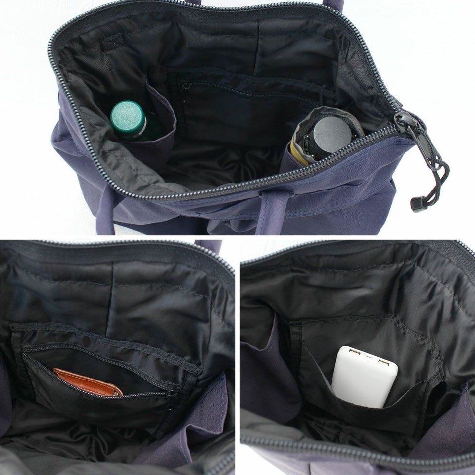 メイン収納の内側サイドポケットには500mlペットボトルや日傘を収納できます。