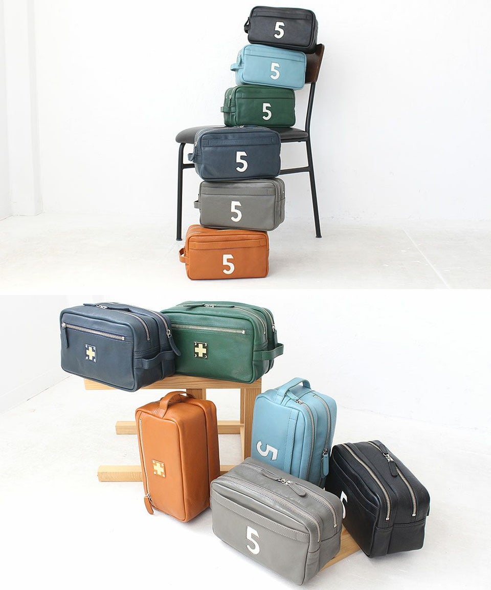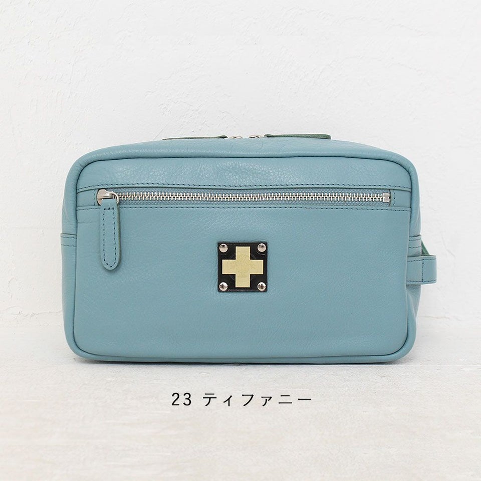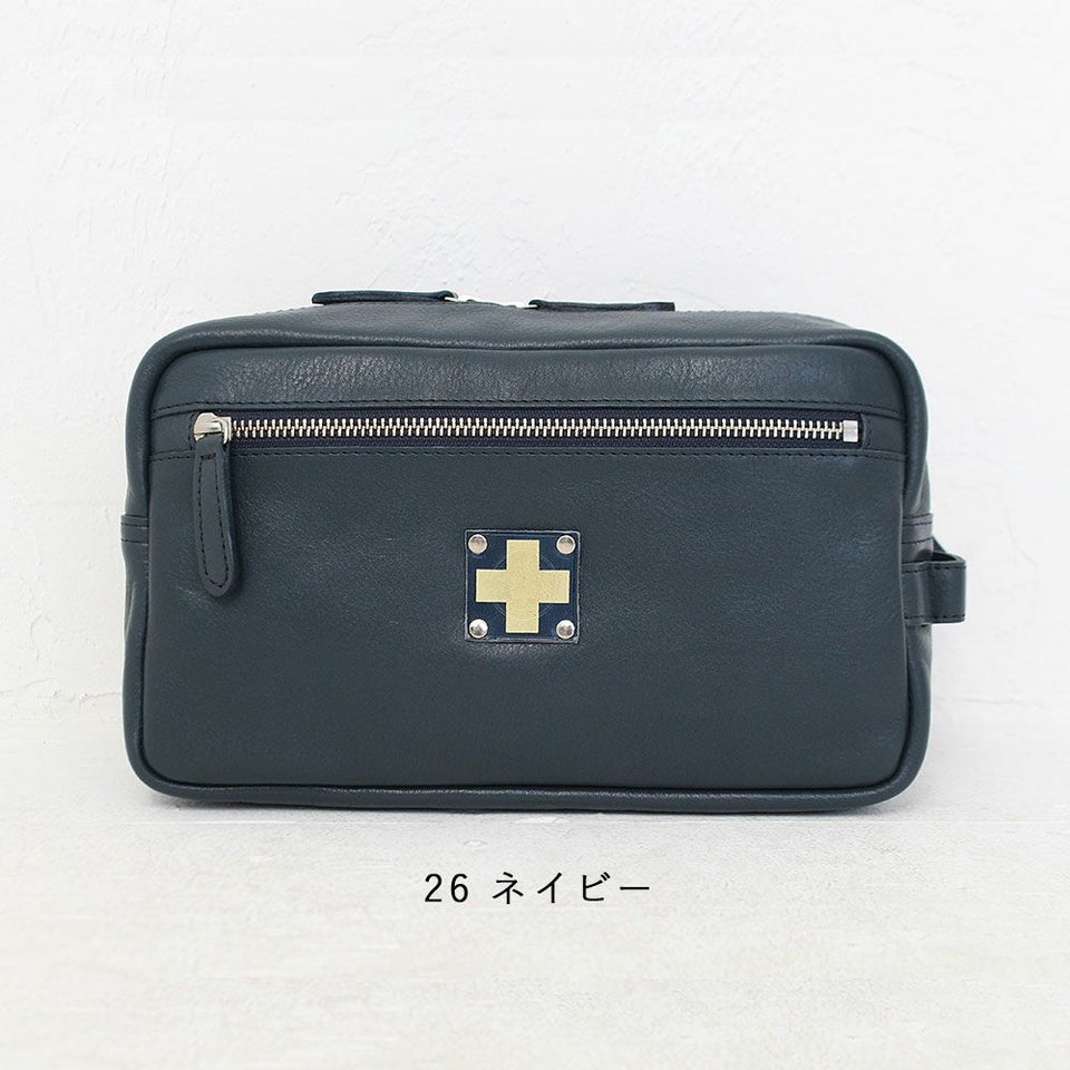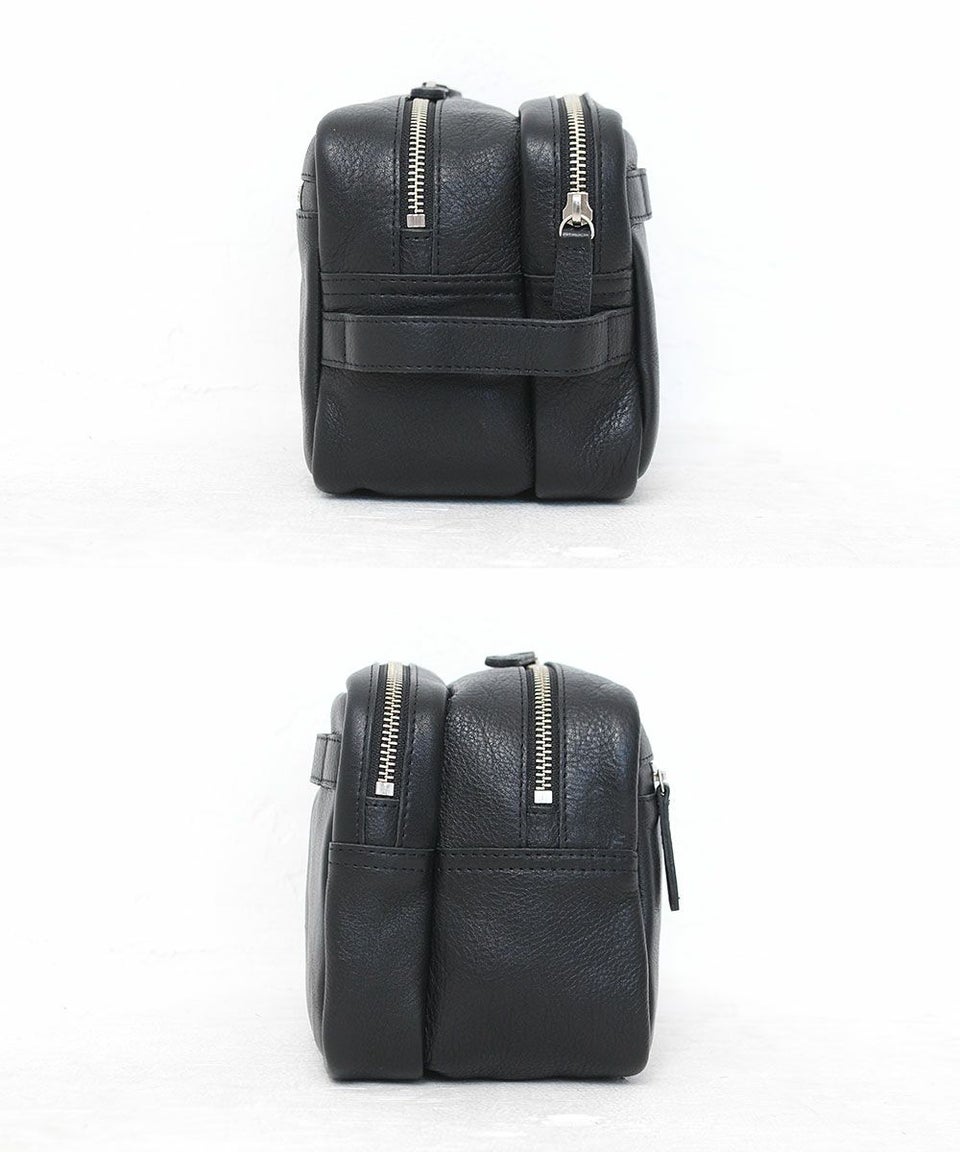 財布、スマホ、メガネ、パスポート、充電器など身の回りのものをすっきりと収納できるオールレザーポーチ。