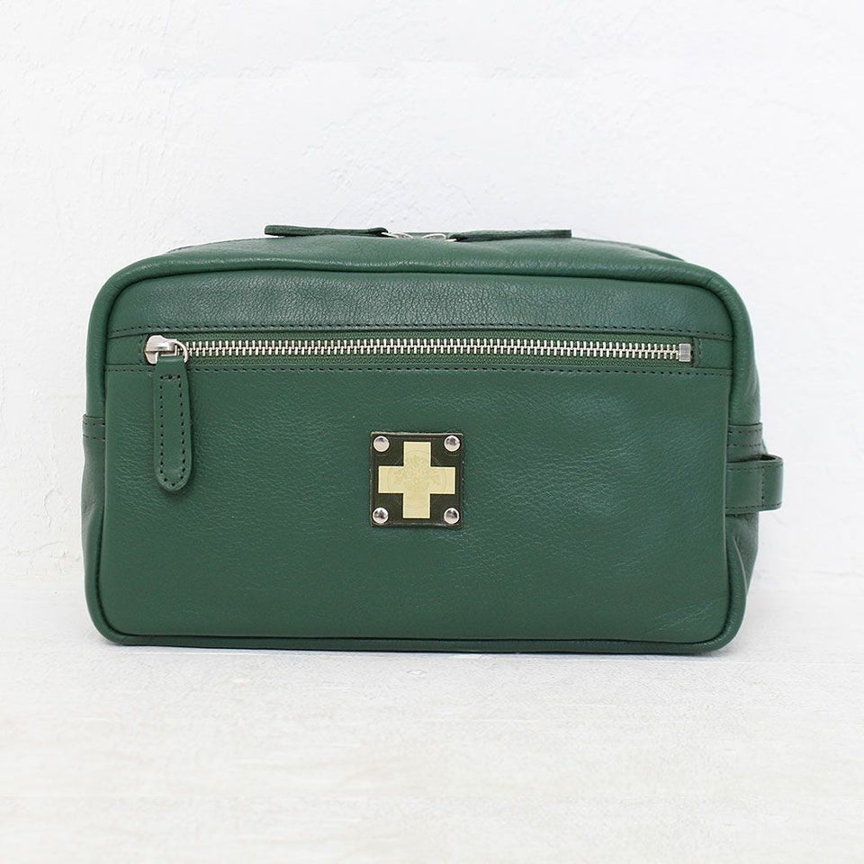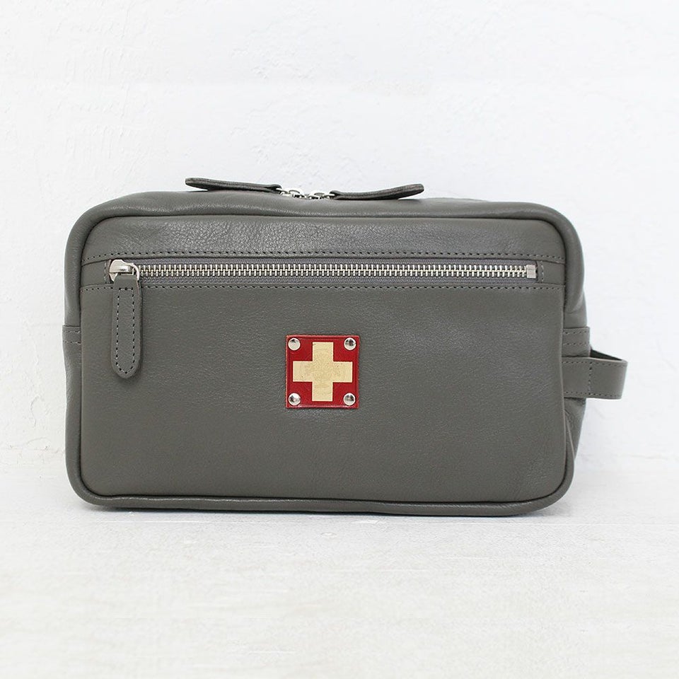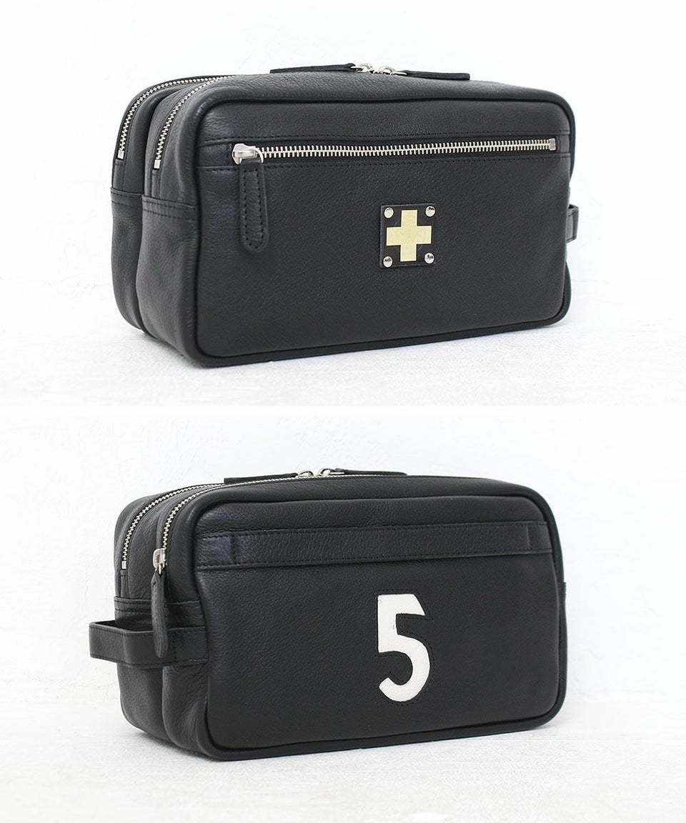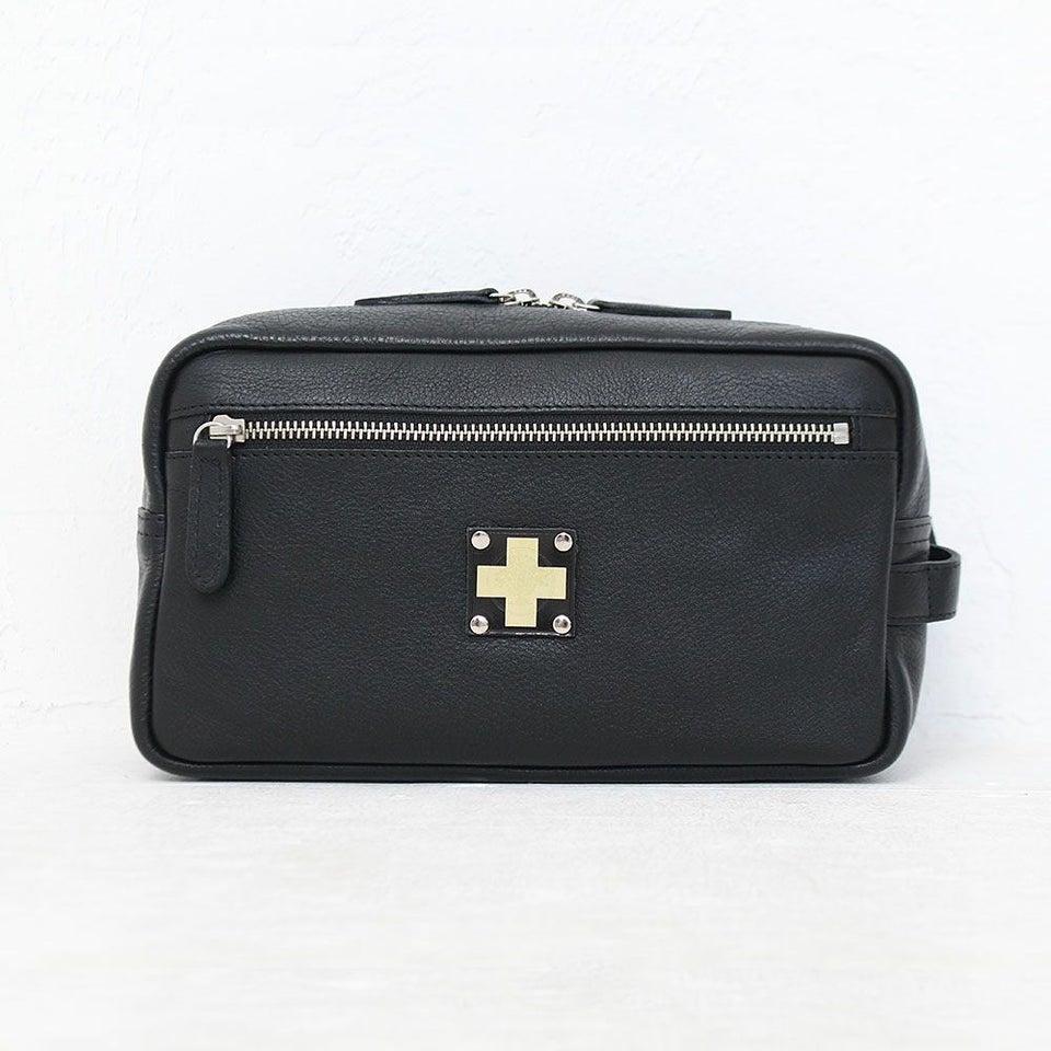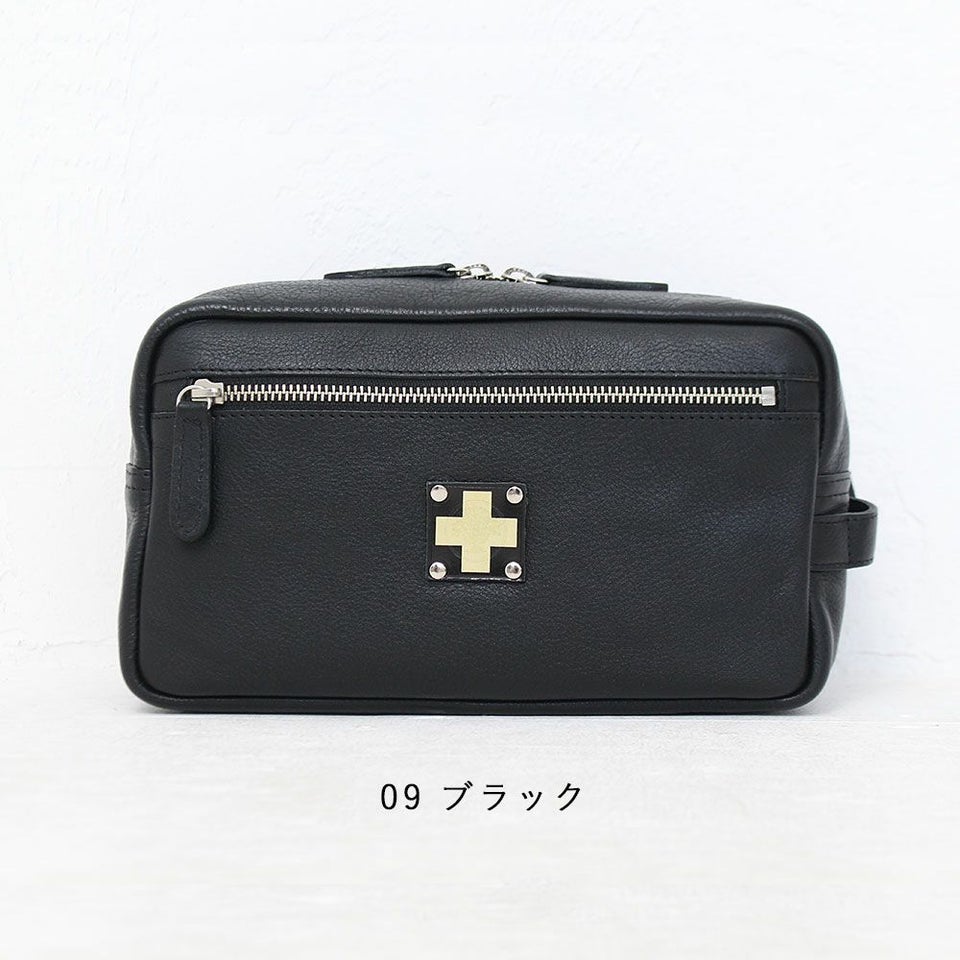 財布、スマホ、メガネ、パスポート、充電器など身の回りのものをすっきりと収納できるオールレザーポーチ。