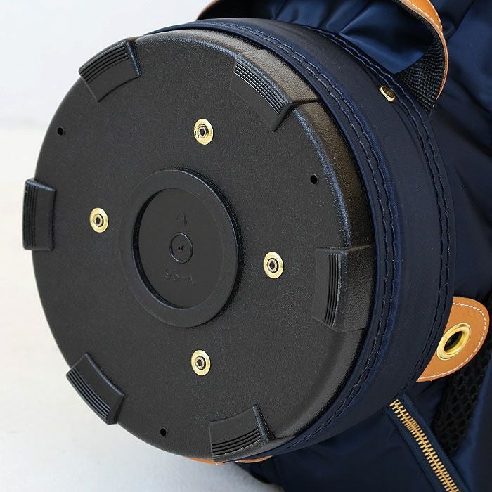 考英舎のキャディバッグは、ハニカム(蜂の巣)という軽くて丈夫な素材を前面上部に埋め込むことにより前後幅を突出させ、前面上部から下部に渡って、奥行きのある収納が可能になり、その収納力は通常のキャディバッグのおよそ三倍にも及びます。