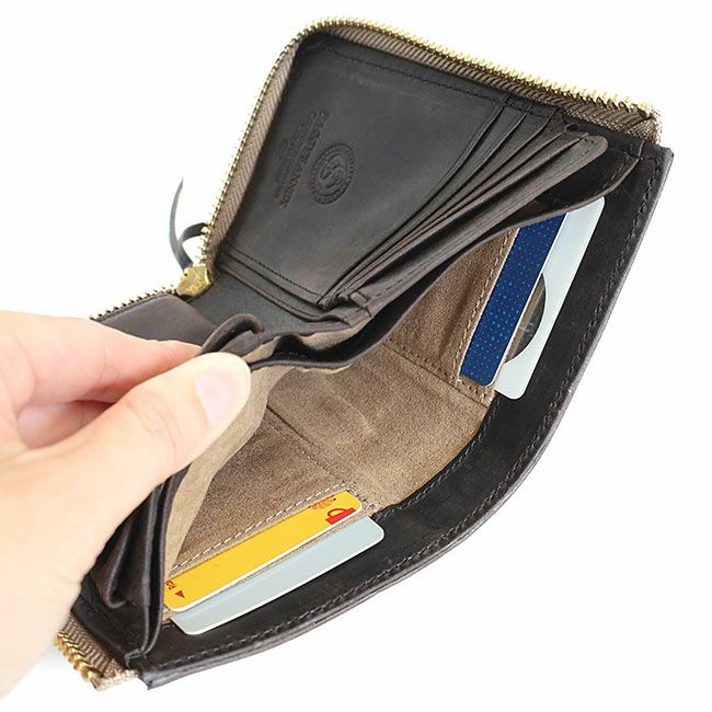 ファスナーを開けるとカードポケットが5ヶ所、フリーポケットが3ヶ所あります。