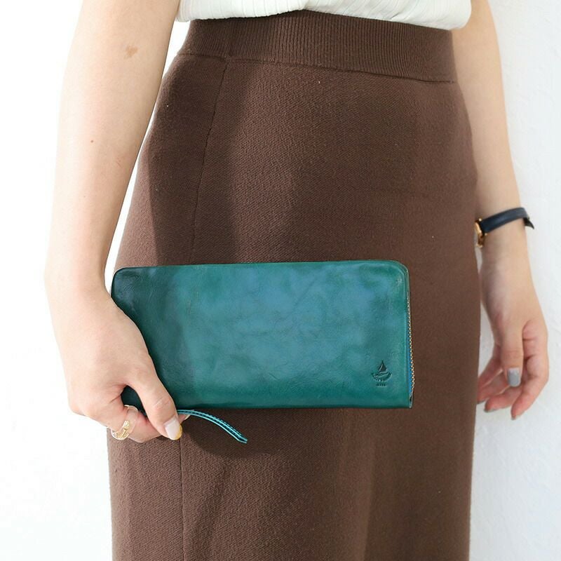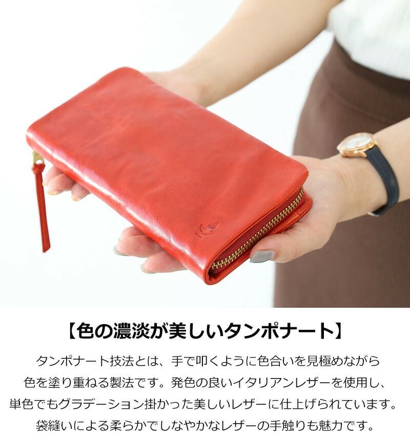 発色の良いイタリアンレザーを使用したやわらかな質感の長財布。