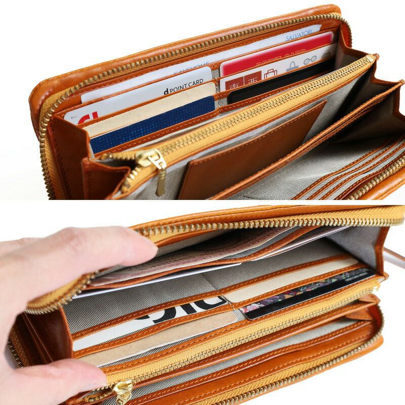 カードがたくさん収納できるラウンアドファスナータイプの大容量のウォレット。
