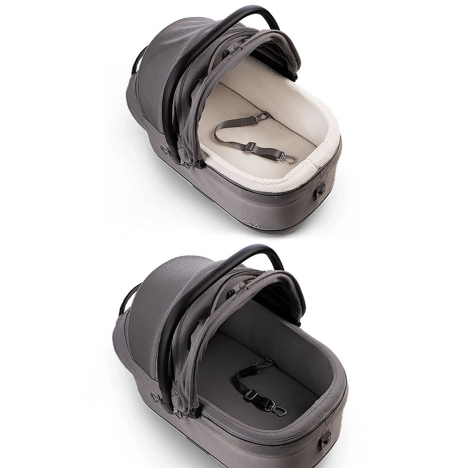 難燃性でありながら有害な難燃化学物質を含まない生地を使用し、ペットに配慮した素材を採用。UPF50の紫外線対策キャノピーや洗えるライナー、パッド入りマットレスなど快適性にもこだわっています。ヴィーガンレザー装飾が高級感を演出するプレミアムデザインです。