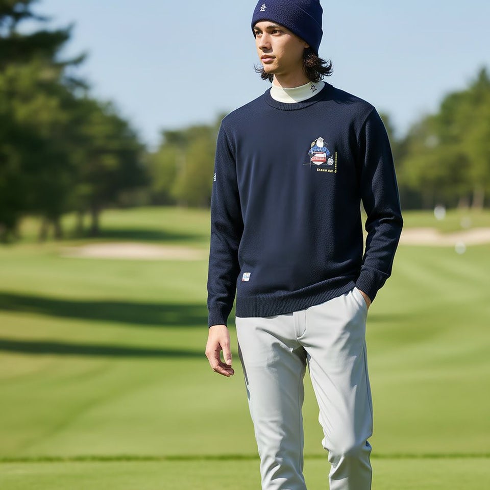 毛とアクリルをブレンドした素材で、ふんわり柔らかく、しっかり保温。冬のゴルフにも最適です。