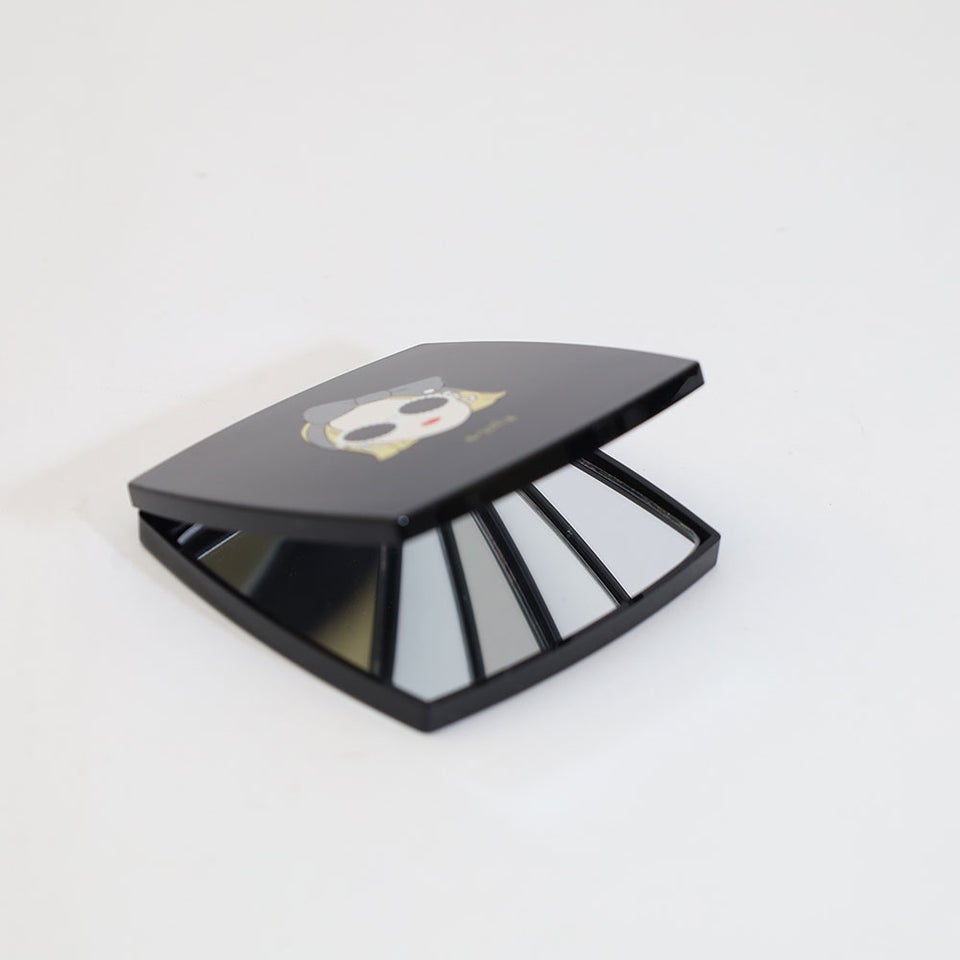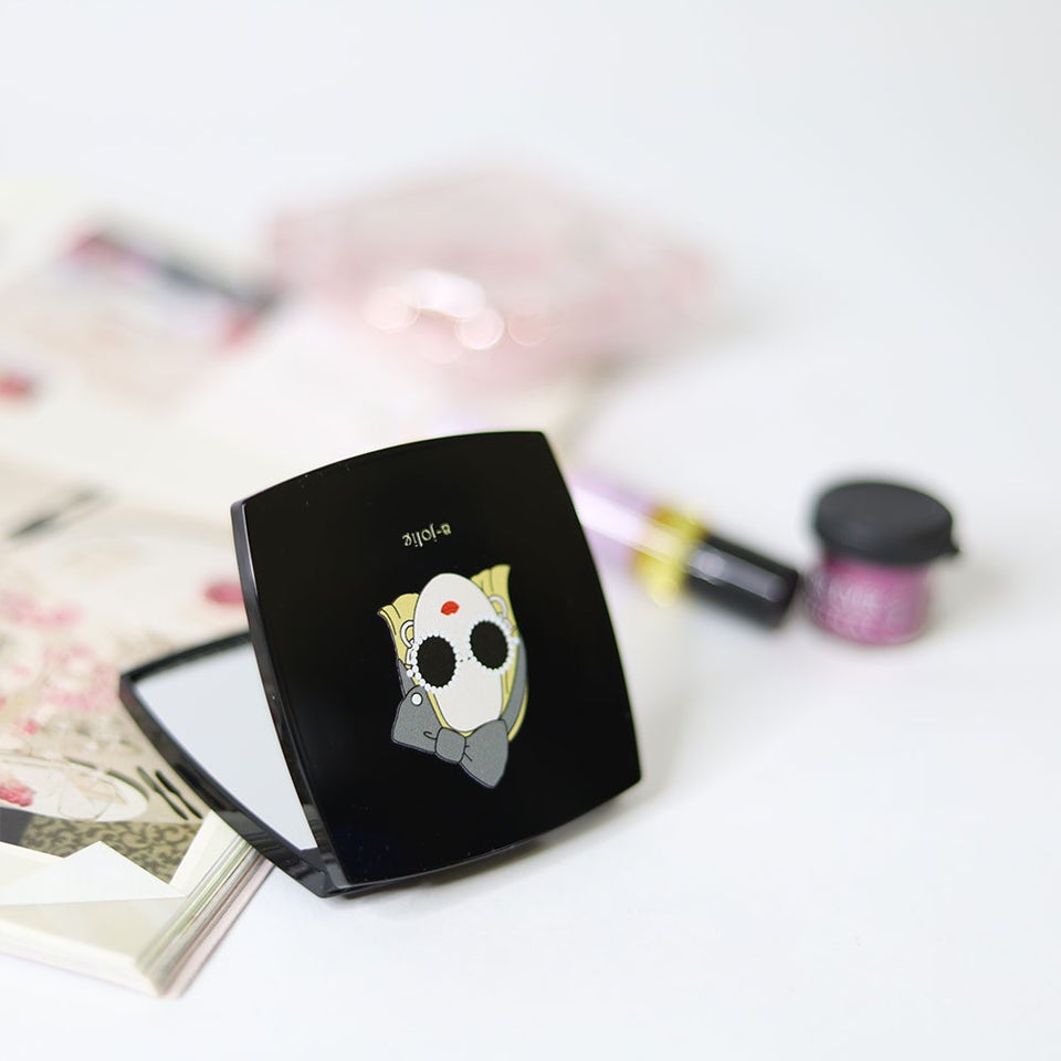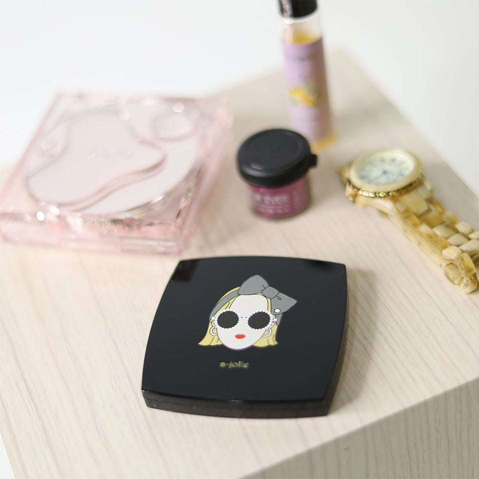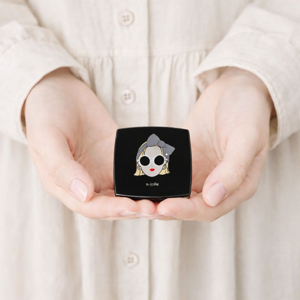 遊び心のあるキャラクターイラストが魅力のアジョリーのコンパクトミラー。印象的なアジョリーガールのデザインが、持つだけで気分を上げてくれるアイテムです。ブラックカラーのシンプルなベースに個性的なイラストが映え、大人の女性でも取り入れやすい上品なデザインに仕上がっています。バッグの中でも存在感を放つおしゃれなミラーです。