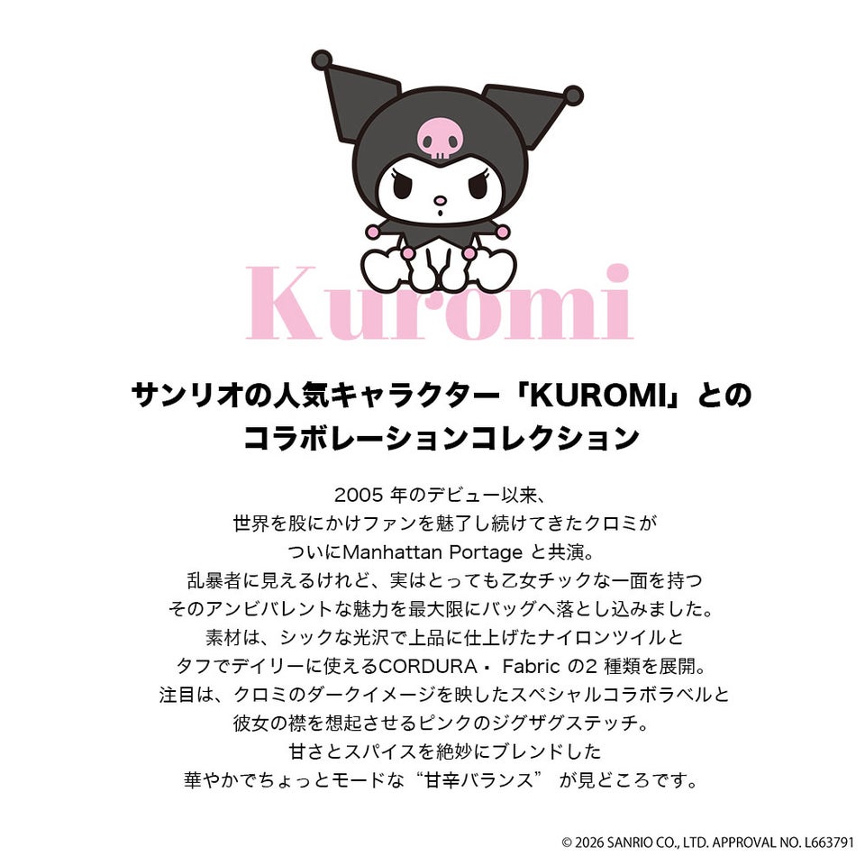 2005年のデビュー以来、世界中で愛され続けるクロミとManhattan Portageが共演した数量限定モデル。ダークでキュートな魅力をバッグに凝縮し、持つだけで特別感を演出します。コラボならではの希少性も高く、ファン必見のアイテムです。