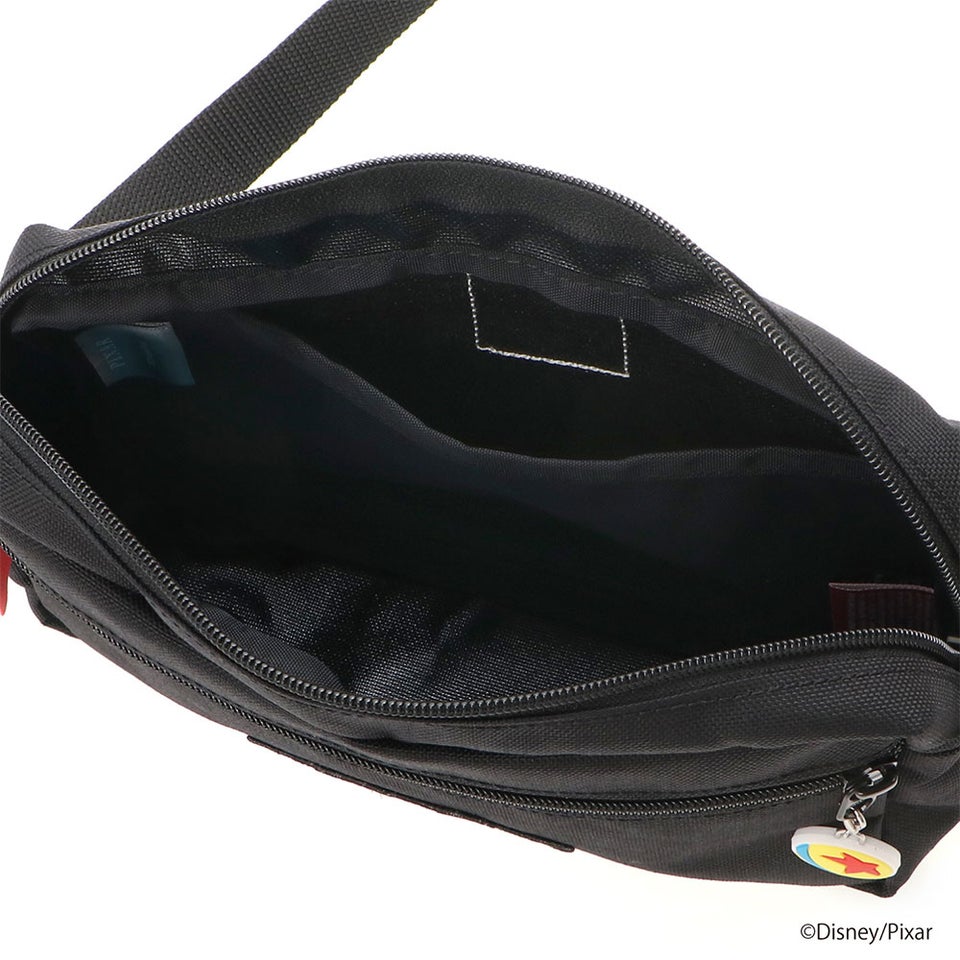 フロントポケットの裏地にはアンディの部屋をイメージした雲柄をプリント。バッグを開けるたびに映画の世界観を楽しめる遊び心のある仕様です。さらにピクサーボールをモチーフにしたチャームも付属し、細部までトイストーリーらしいポップで楽しいデザインに仕上がっています。