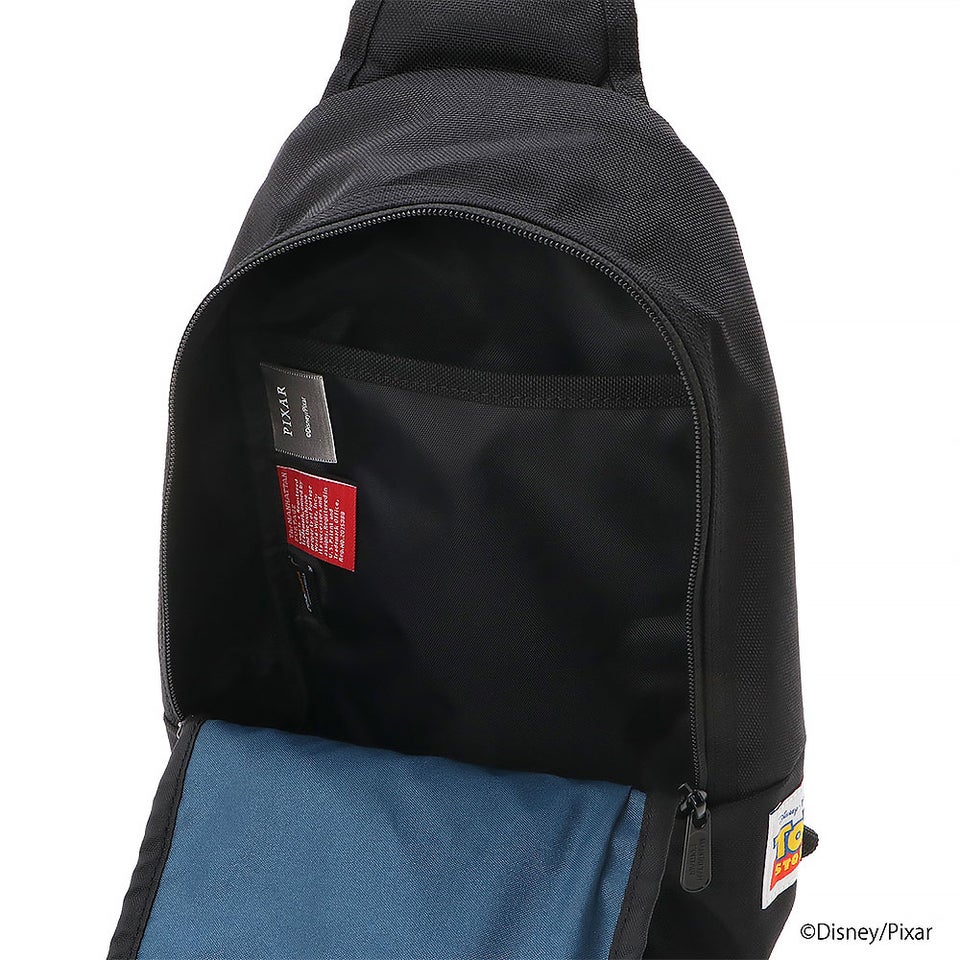 フロントのジッパーポケットの裏地には宇宙柄をあしらい、バッグを開けるたびに映画の世界観を楽しめる仕様。さらにピザプラネットのロケットをモチーフにしたチャームも付属し、細部まで遊び心を感じられるデザインです。日常使いの中でトイストーリーの魅力を感じられる特別なバッグです。