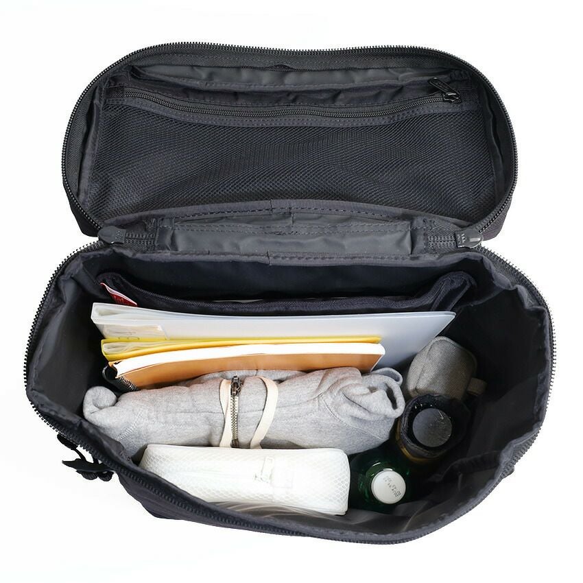 裏地にはPVC加工を施した420Dナイロンを採用し、濡れたものを入れても安心な設計です。