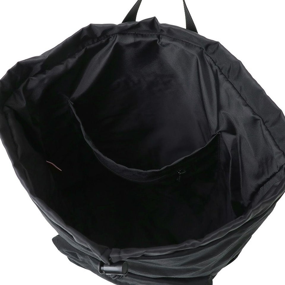 ドローコード式のメイン収納は大きく開き、荷物の出し入れがスムーズ。内部には大きな仕切りポケットとジッパーポケットを配置し、A4サイズも収納可能。通学や普段使いにも便利です。