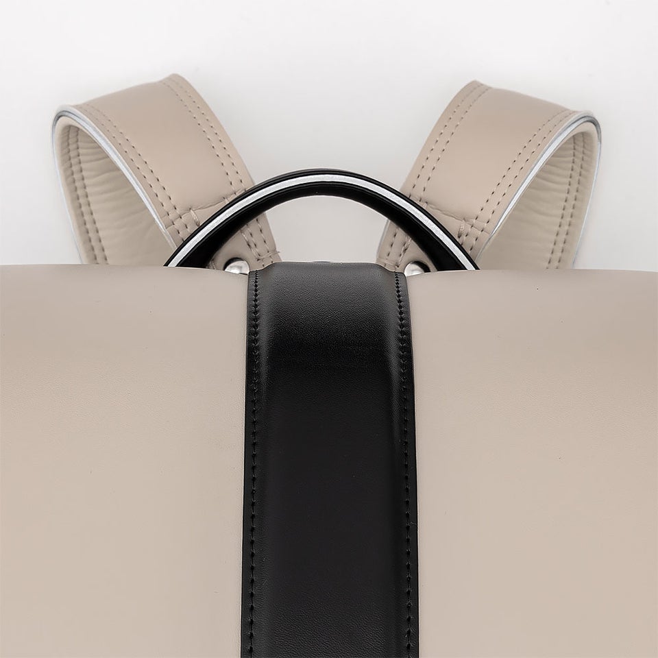 開口部には補強構造を採用し、荷物の出し入れによるダメージを軽減。毎日の使用で負担がかかりやすい部分を守り、美しい形を維持します。耐久性と撥水性に優れた素材を使用することで雨の日でも安心して使え、6年間の使用をしっかり支えます。