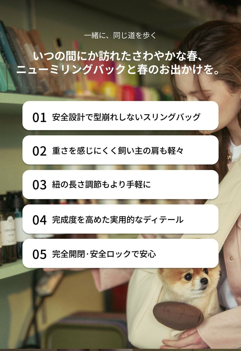 飛び出し防止の安全リードや、ロックスライダージッパー仕様でペットとのお出かけを安全にもっと楽しく。