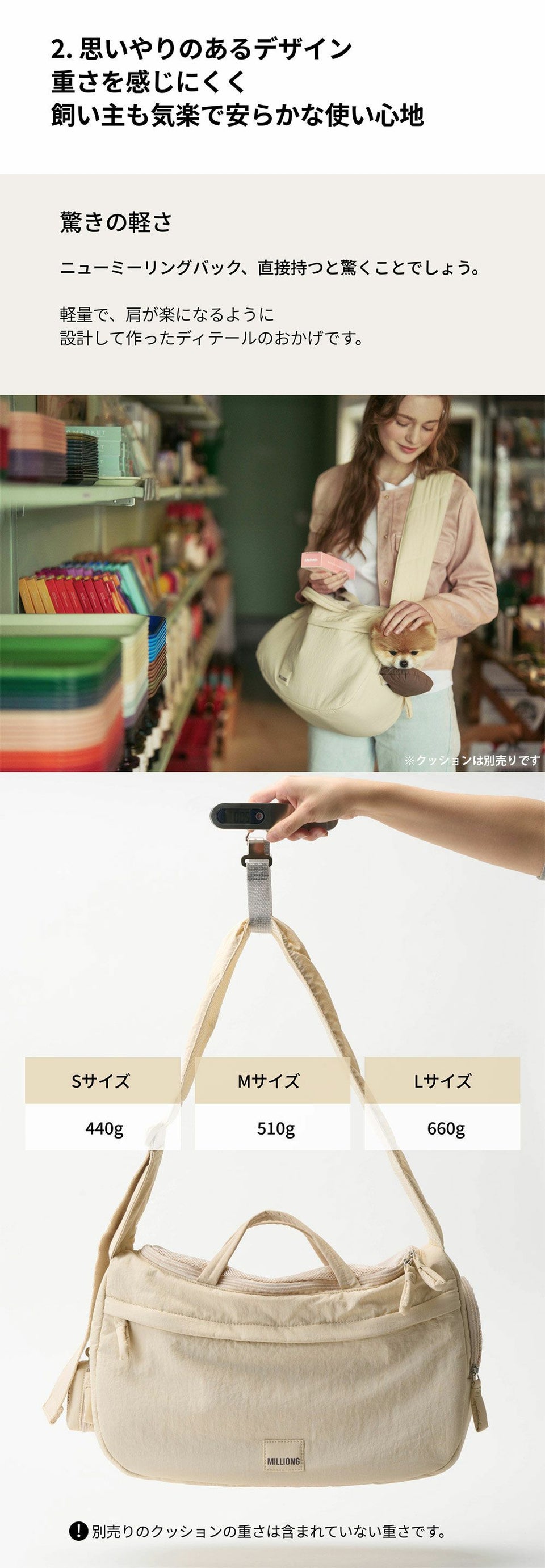 MILLIONG ミリオン ニューミリングバッグ Lサイズ ペット スリングバッグ クリーム
