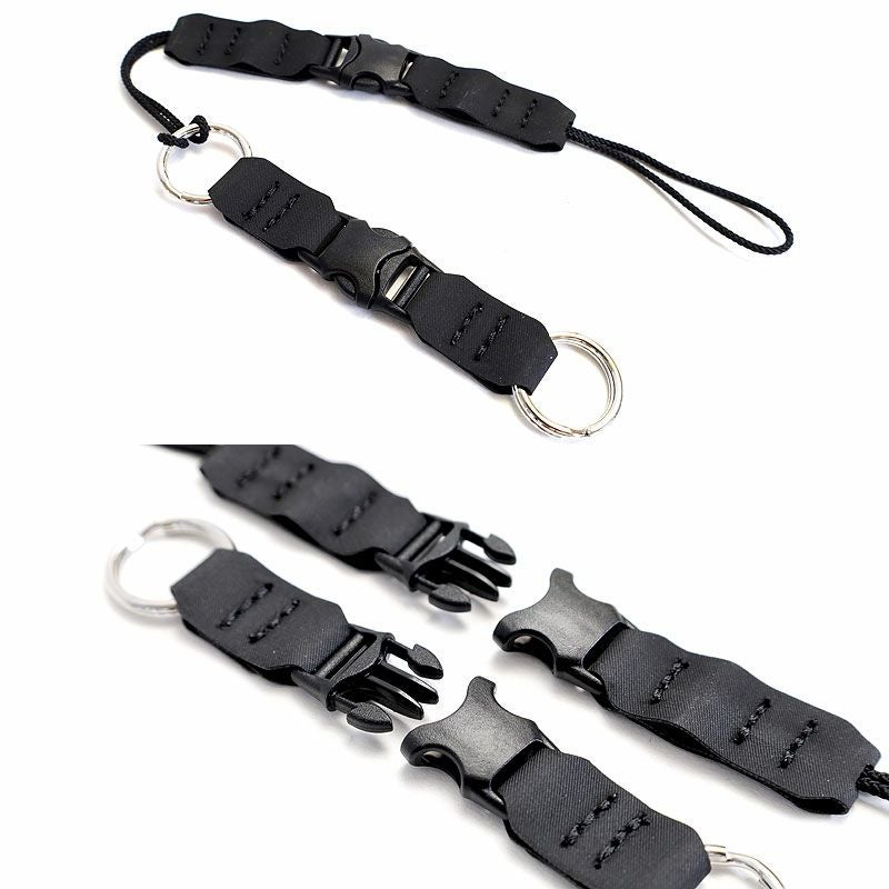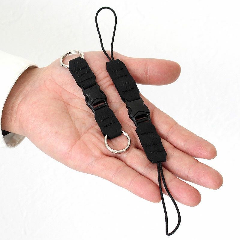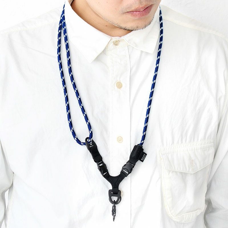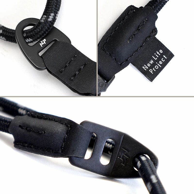 アタッチメント交換部分には強度の高い20mmPOM製(ポリアセタール樹脂製)バックルを採用。バックルとロープ、リングなどの決着部分には耐摩耗性、耐薬品性にも強いハイパロン(CSM・クロロスルフォン化ポリエチレン)素材を使用し強度や縫製面含め、スマートに仕上げたカメラストラップです。