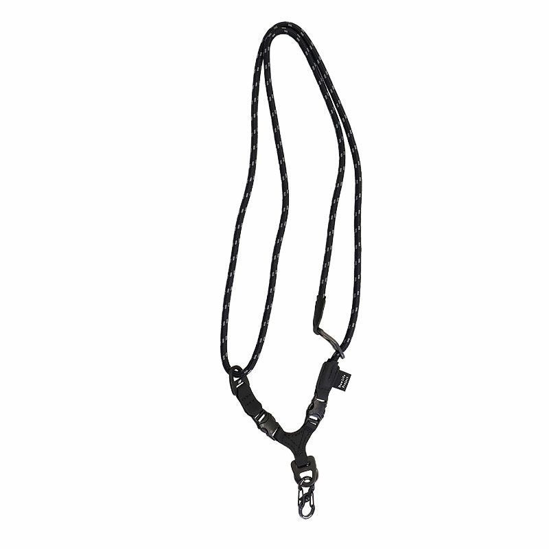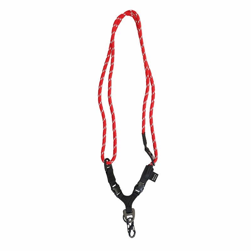 ロープの長さ調整を簡単に行う為に、NLPオリジナルデザインのアルミ製R&W Tensionerを使用したマルチストラップです。