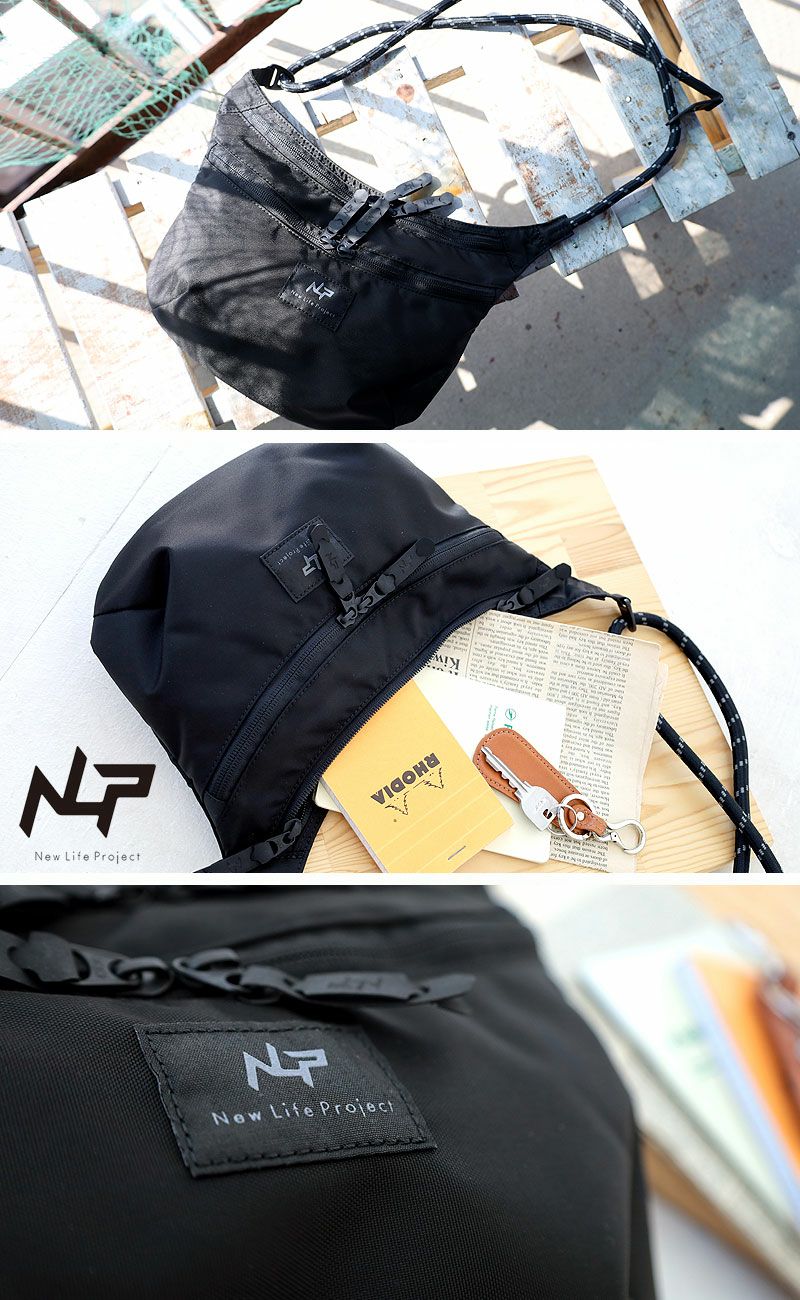 本体、ファスナー引手など各所にNLPのロゴが入っています。