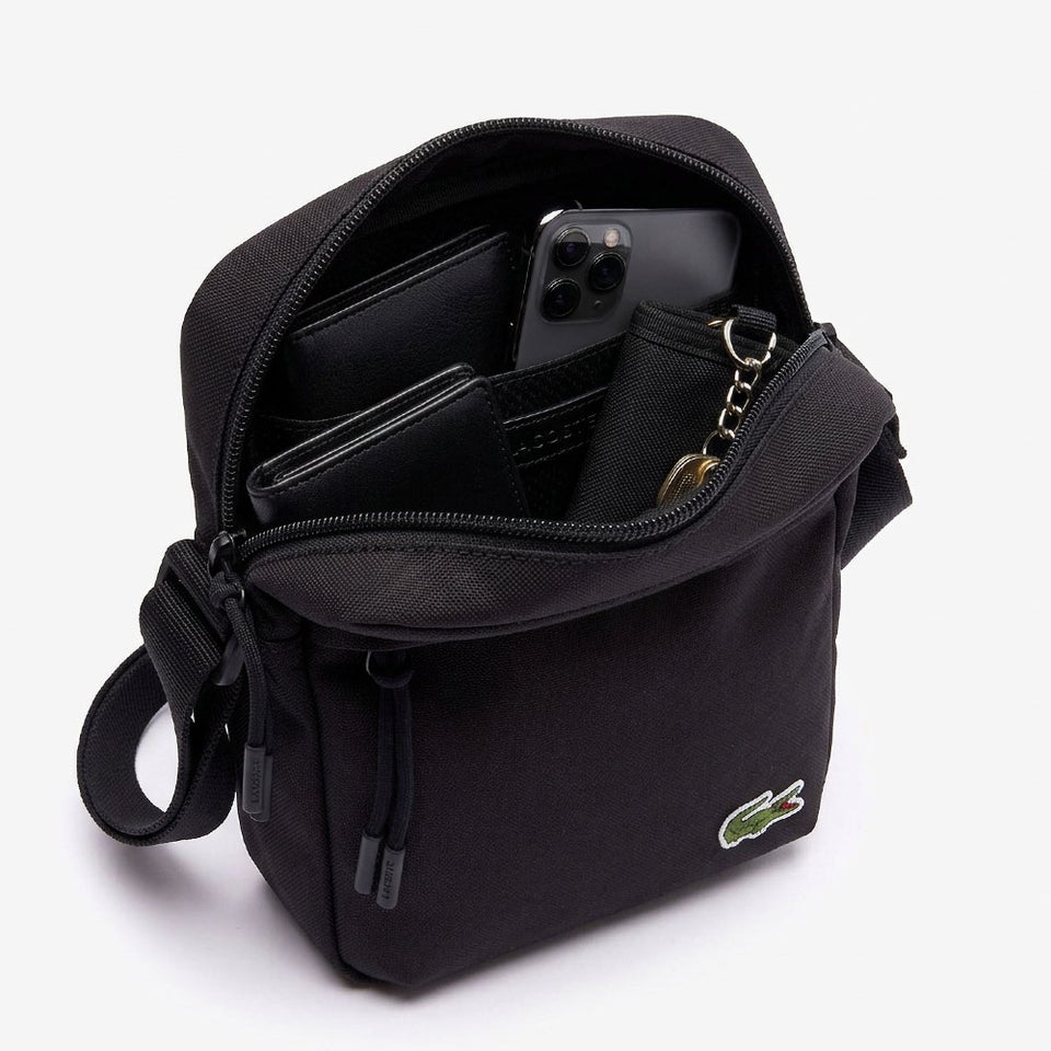 環境に配慮したリサイクルポリエステル素材を使用し、軽く扱いやすい仕上がりに。耐久性にも優れ、日常使いでも安心して使える素材です。カジュアルな質感の中にラコステらしい洗練された雰囲気を感じられ、毎日のコーディネートにも自然に馴染むショルダーバッグです。