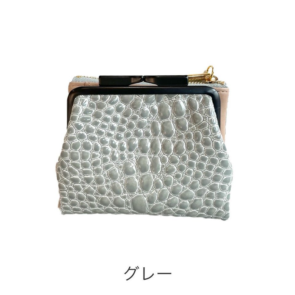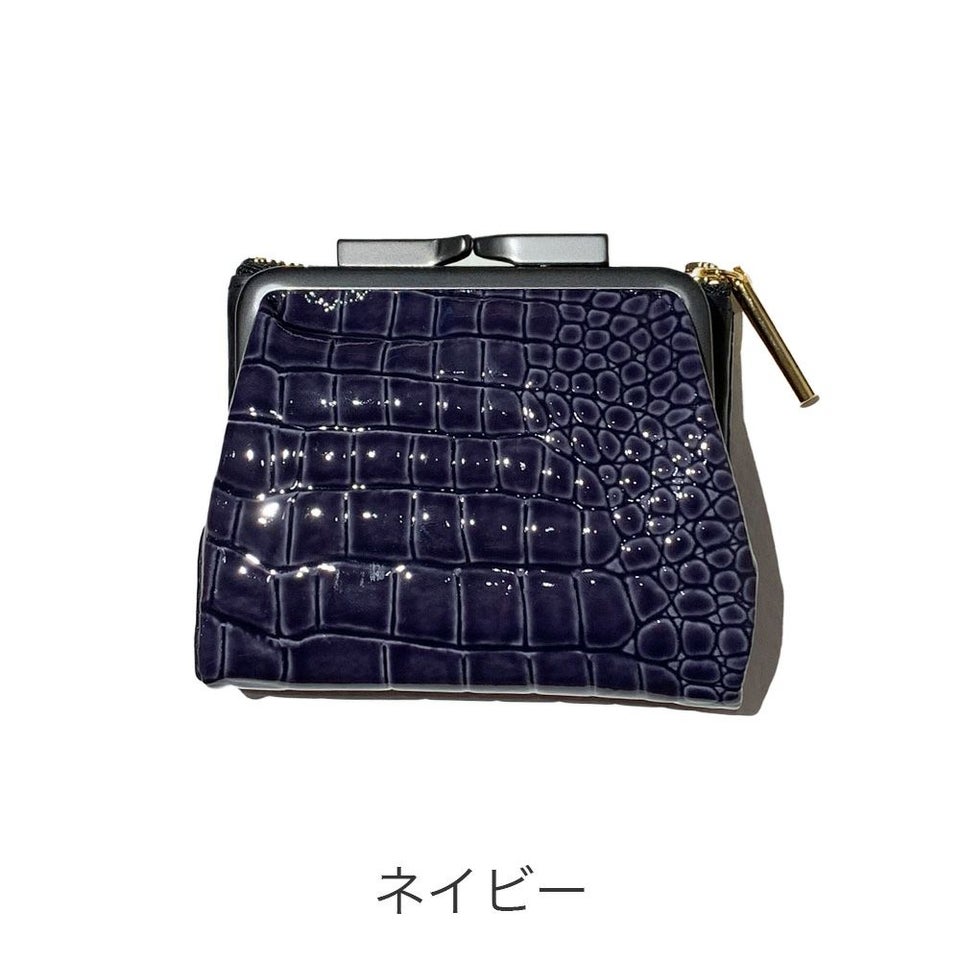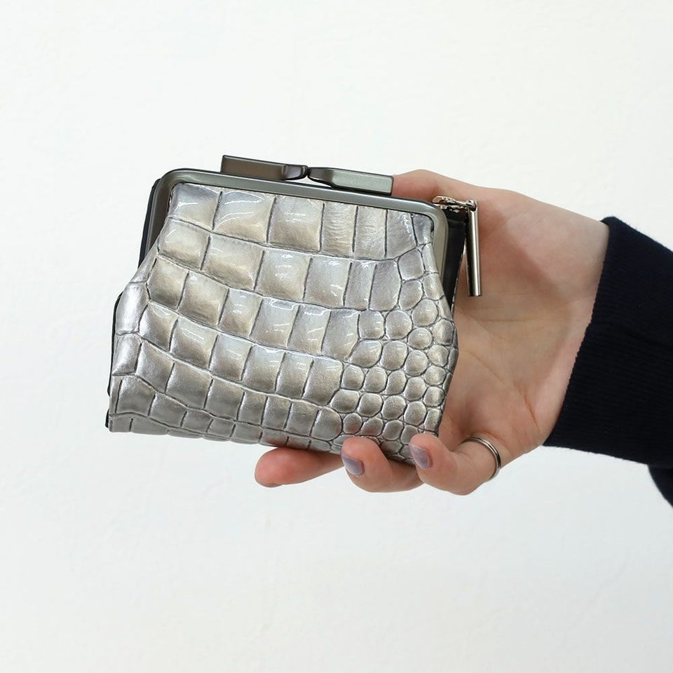 牛革にクロコダイル調の型押しを施し、エナメル加工で上品な光沢をプラス。洗練されたデザインが、大人の女性にぴったりの高級感を演出します。