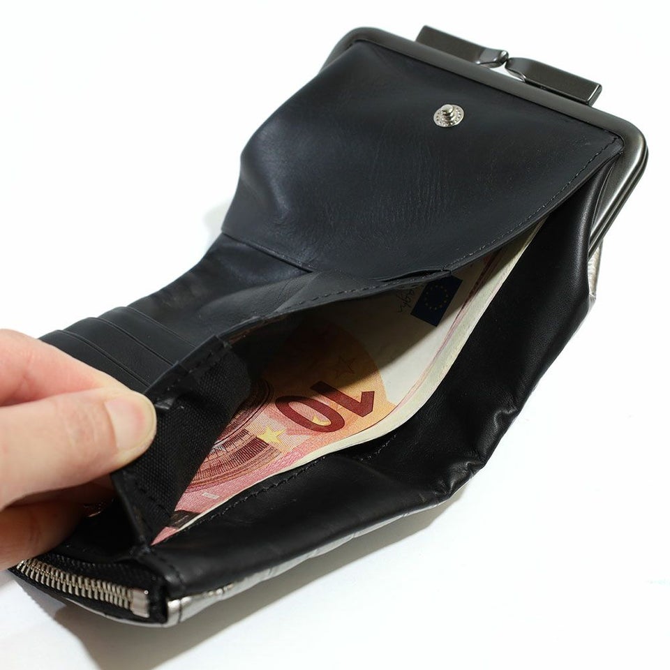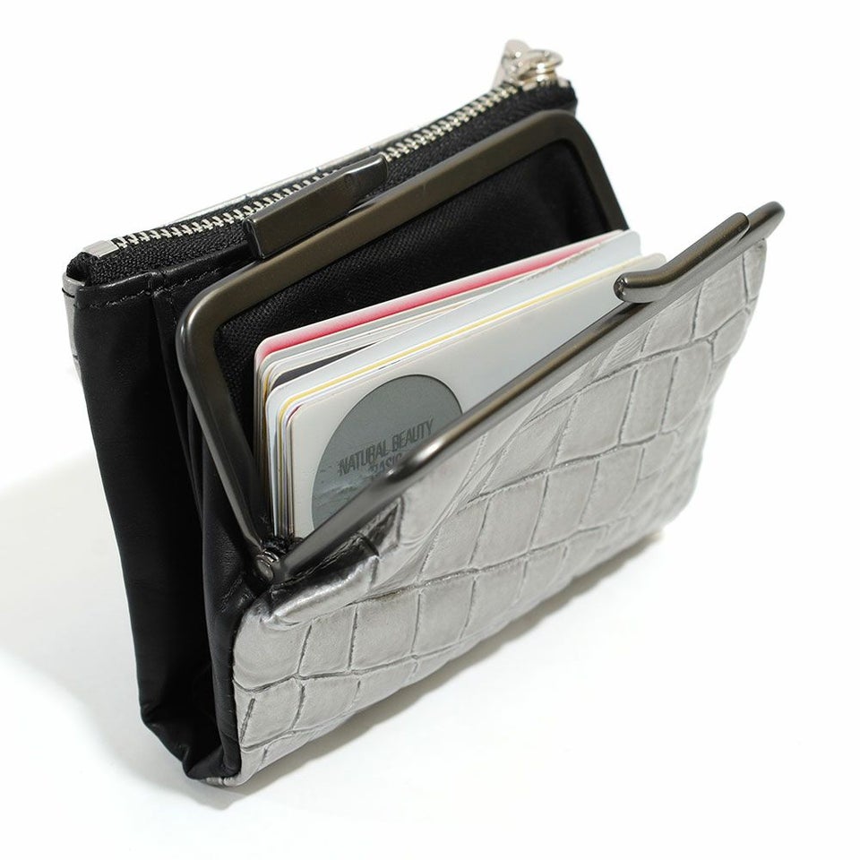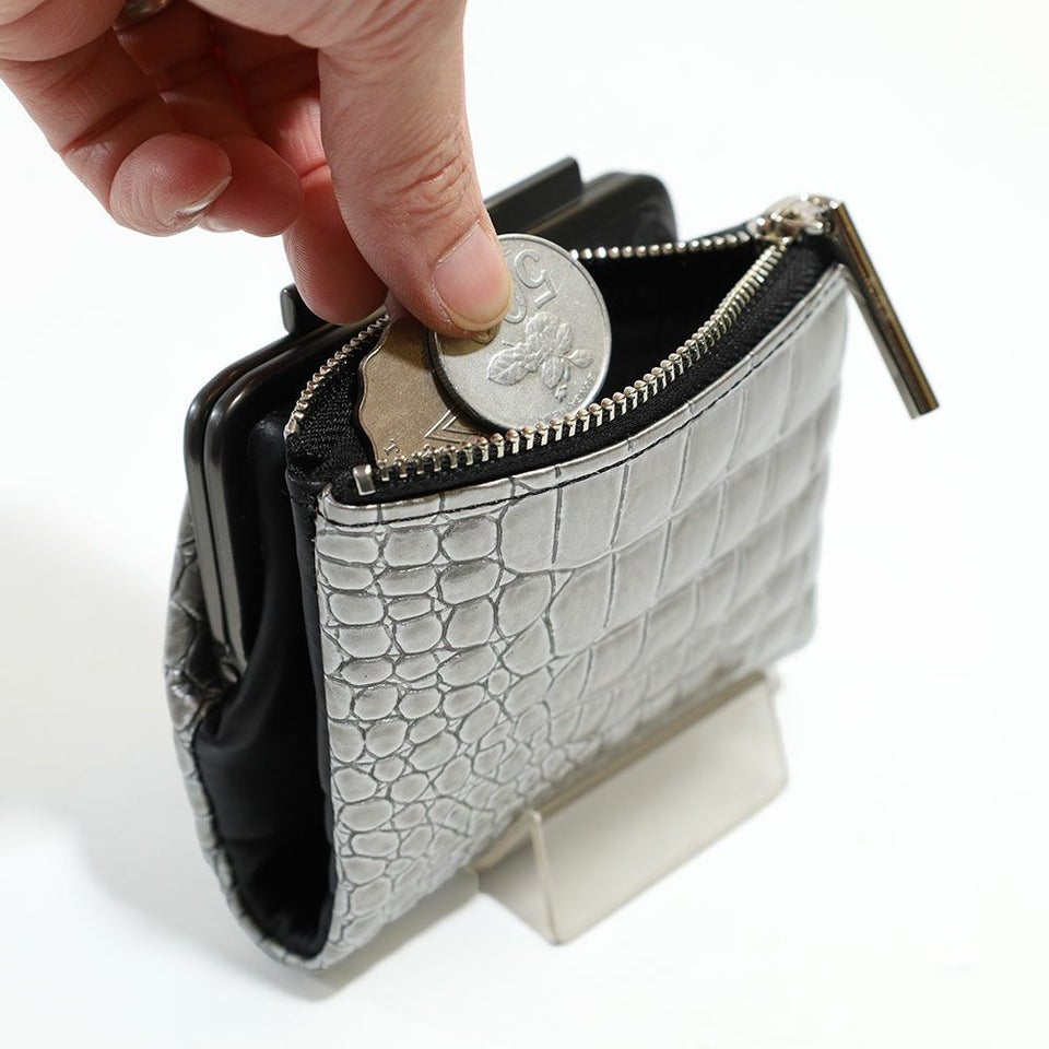 ガマグチとジップポケットが一体化した2つ折りタイプで、お札・小銭・カードをすっきり収納。使うたびに感じる、手のひらサイズの便利さが魅力です。