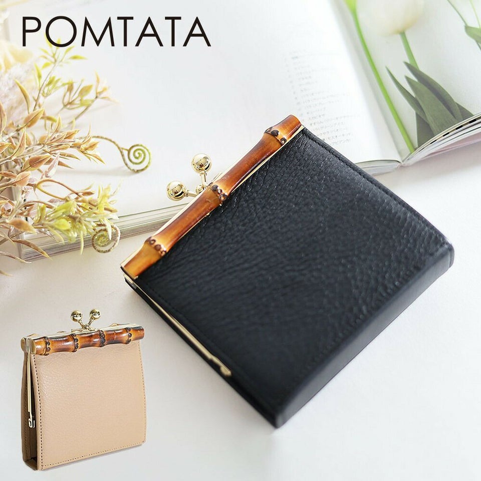 POMTATA トップにバンブーを使用し、開閉はがま口仕様になったクラシックな印象のウォレット 送料無料