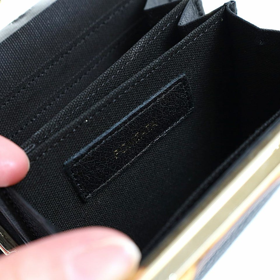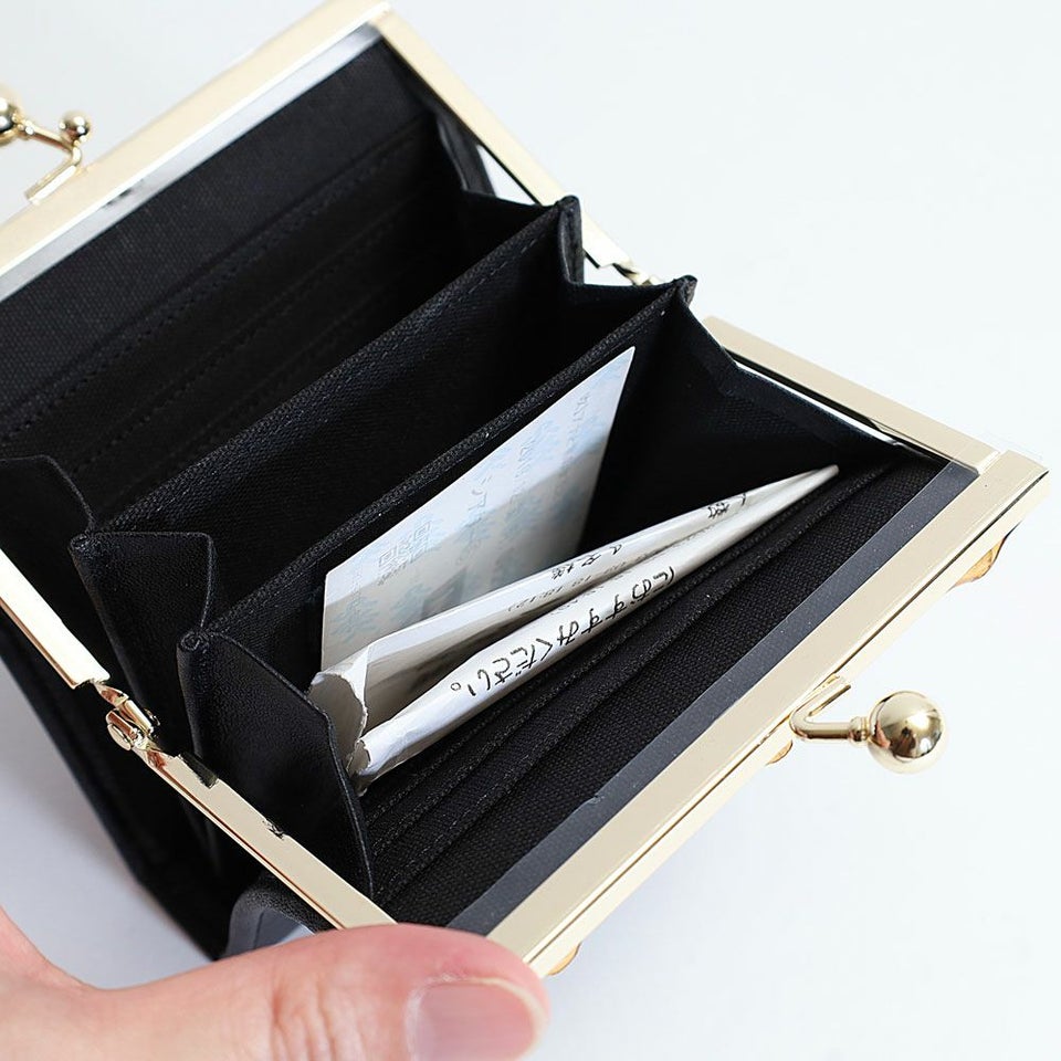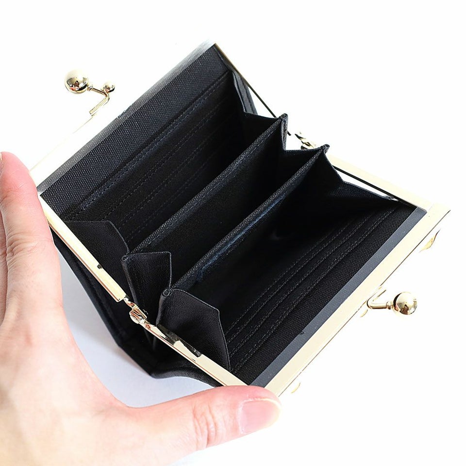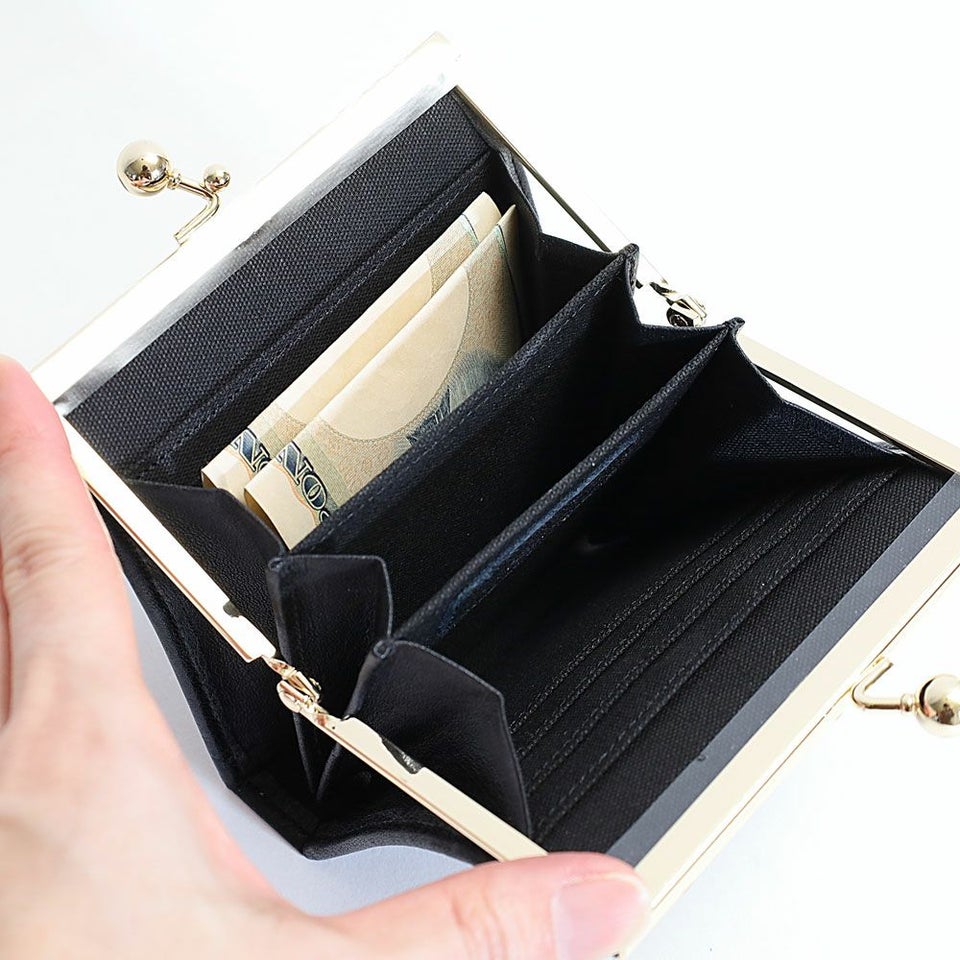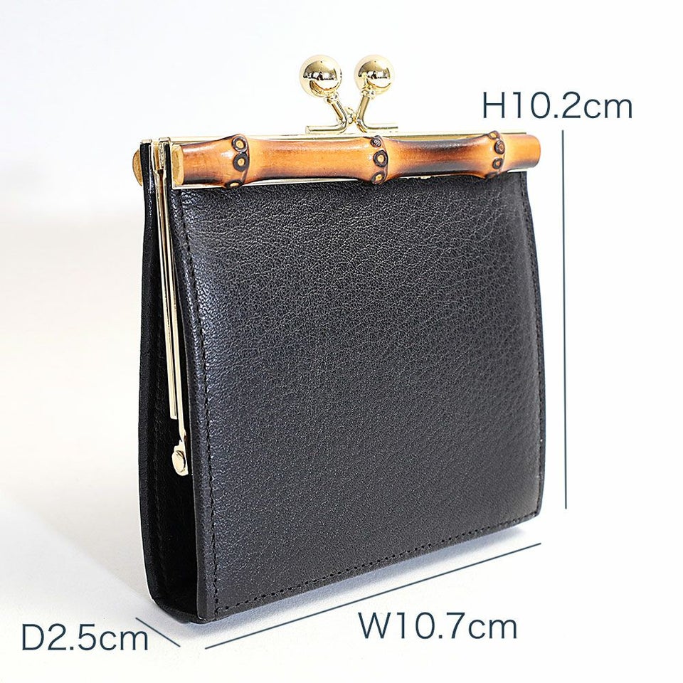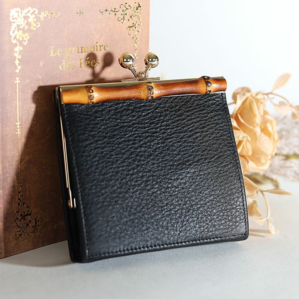 トップにバンブーを使用し、開閉はがま口仕様になったクラシックな印象のウォレットです。