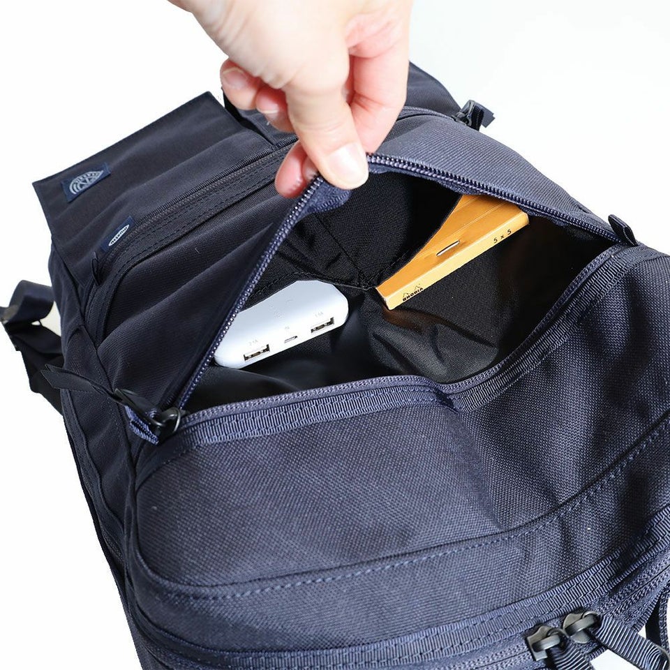 フロントには小物収納に便利なポケットが上下に備わっています。