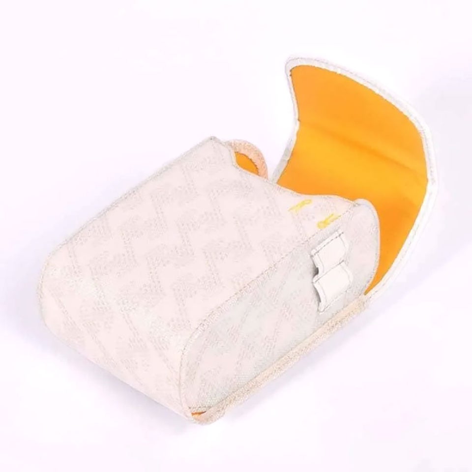 幾何学模様の生地とレザーを組み合わせたデザインが、ゴルフスタイルに高級感をプラス。ゴールドの箔押しロゴがさりげないアクセントになり、後ろ姿の印象も引き締めます。機能性だけでなく所有する満足感も高めてくれる仕上がりです。