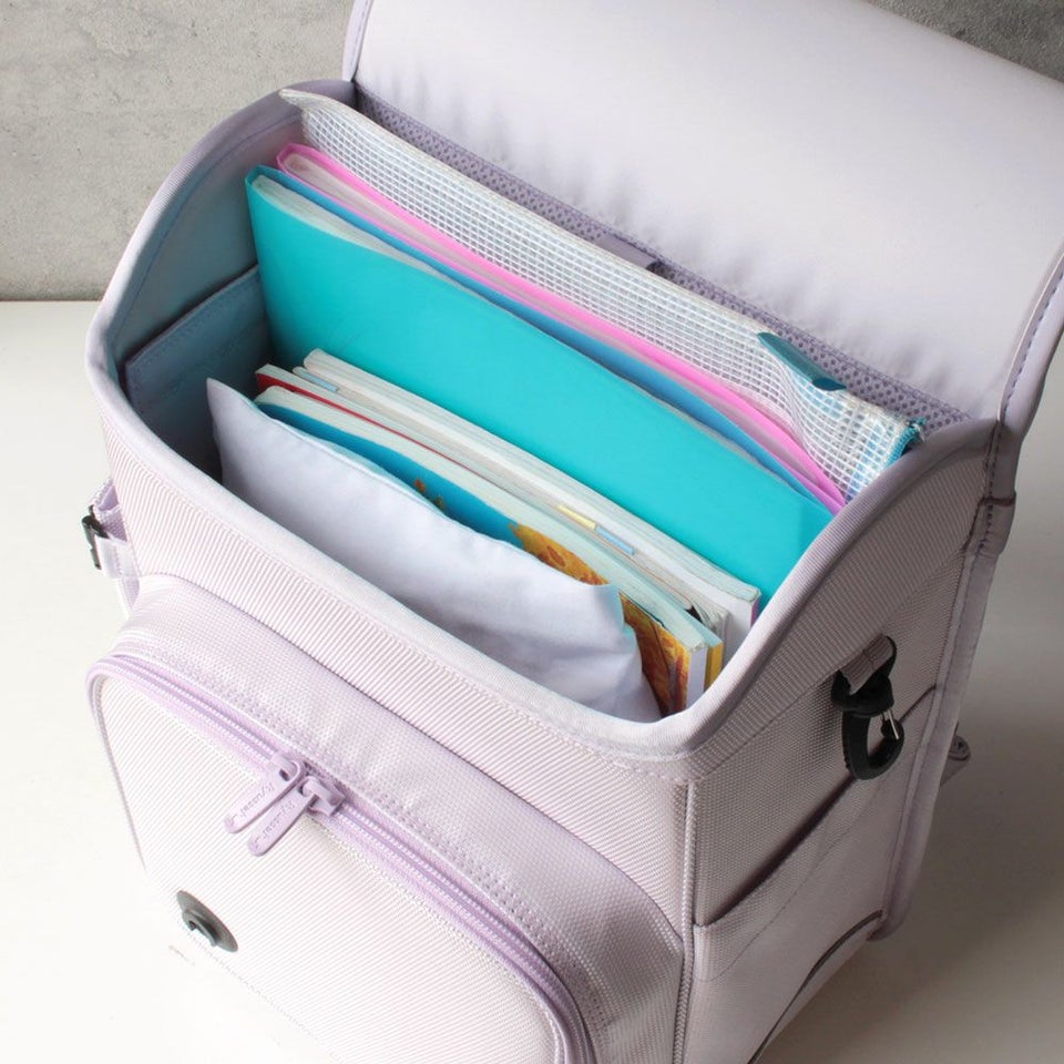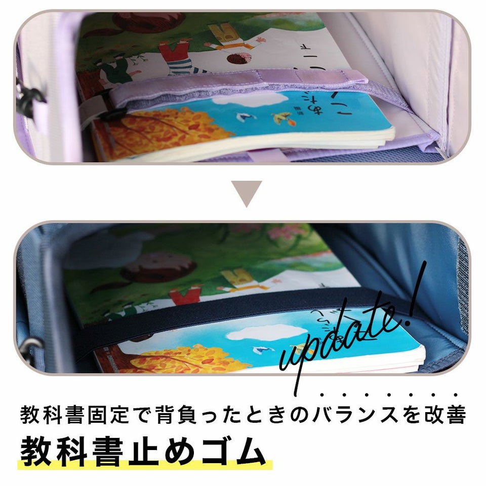 教科書止めバンドをマジックテープからゴム仕様に変更。開け閉めしやすく、中でガチャガチャと動かないスマートな構造に。小さな改良の積み重ねが、毎日の使いやすさとストレスのない通学体験を叶えます。