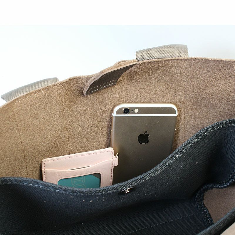 表側は柔らかなレザーで内側はコットンキャンバス地が重なっていて