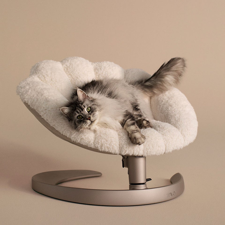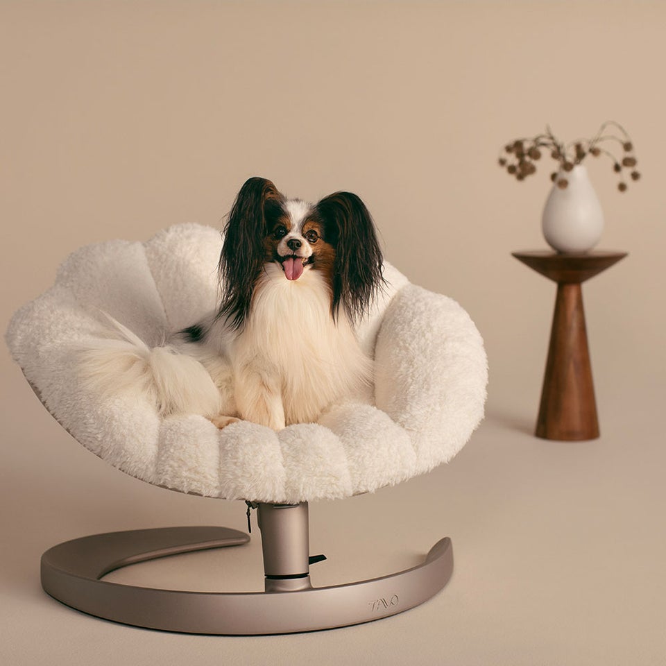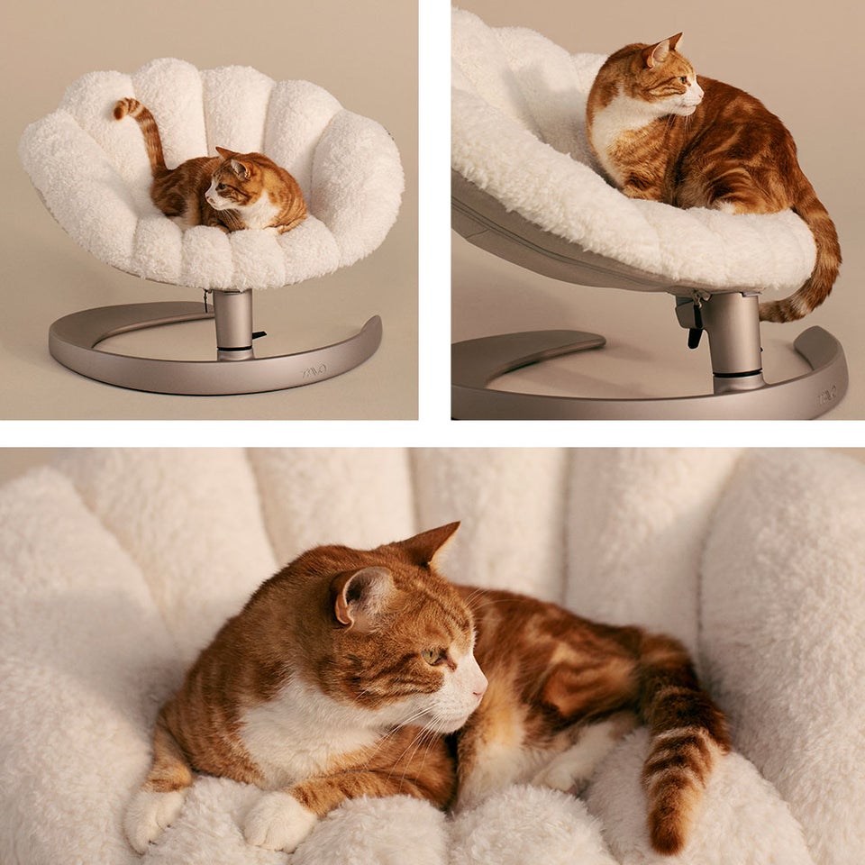 貝殻をモチーフにした独自のデザインが、ペットをやさしく包み込む安心空間を作ります。高めのプラットフォーム設計により、床の冷気やホコリから守りながら飼い主の近くで過ごせる快適な居場所を実現。ペットにとって落ち着ける特別な空間になります。