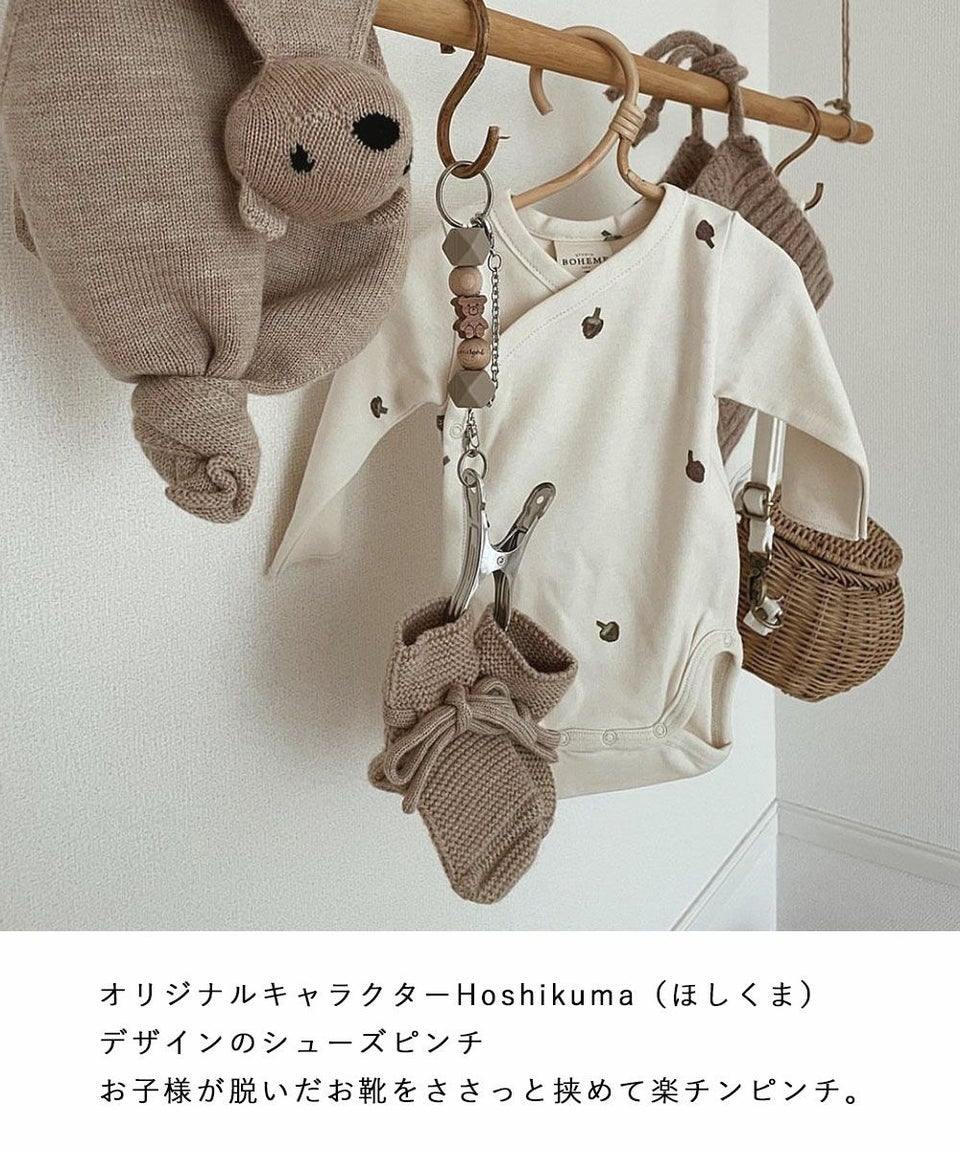 シリーズ案内 オリジナルウッドビーズ Hoshikuma(ほしくま)デザインのシューズピンチ。