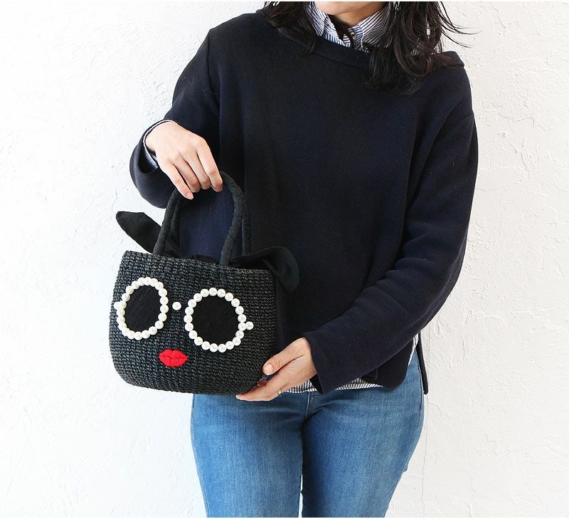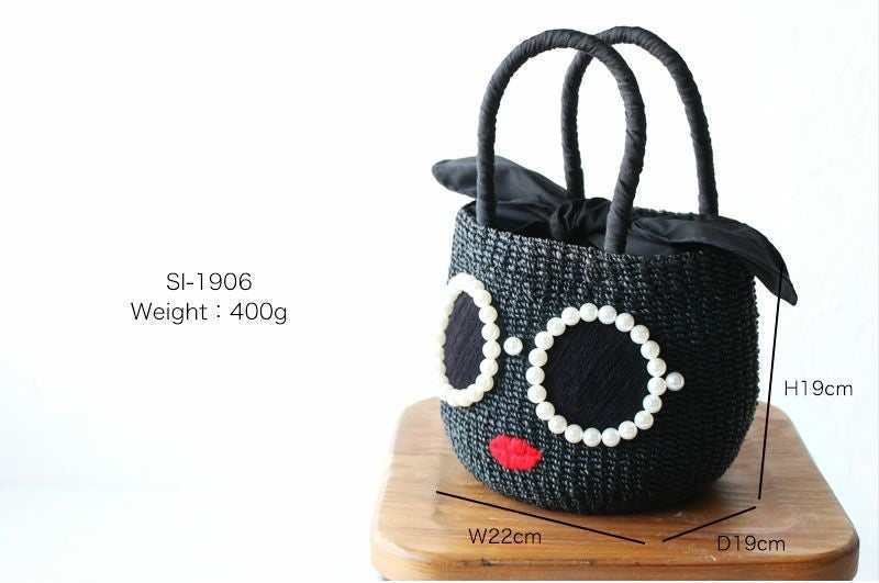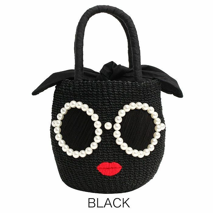 パールで縁取られたサングラスが特徴的なカゴバッグ 送料無料