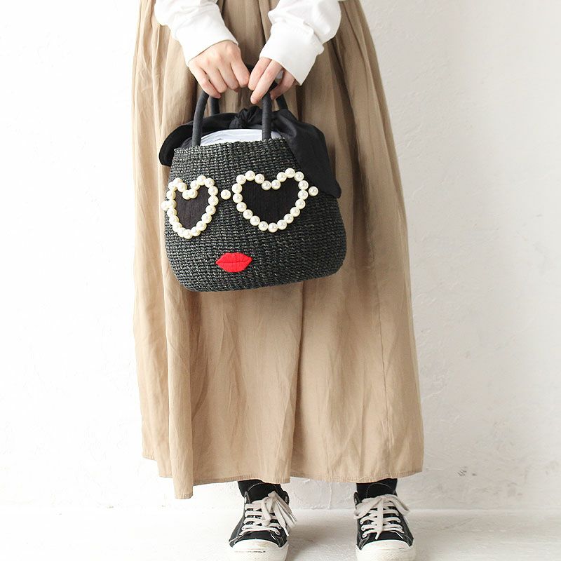 ハートのサングラスがキュートなカゴバッグ