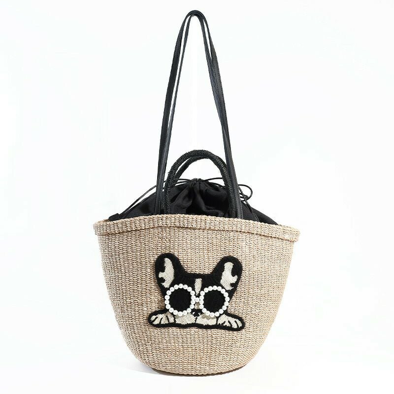 パールサングラスをかけた可愛い動物たちのかごバッグです。