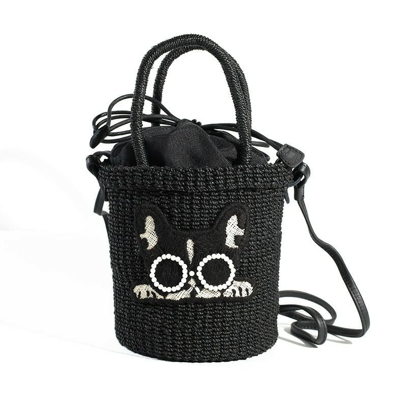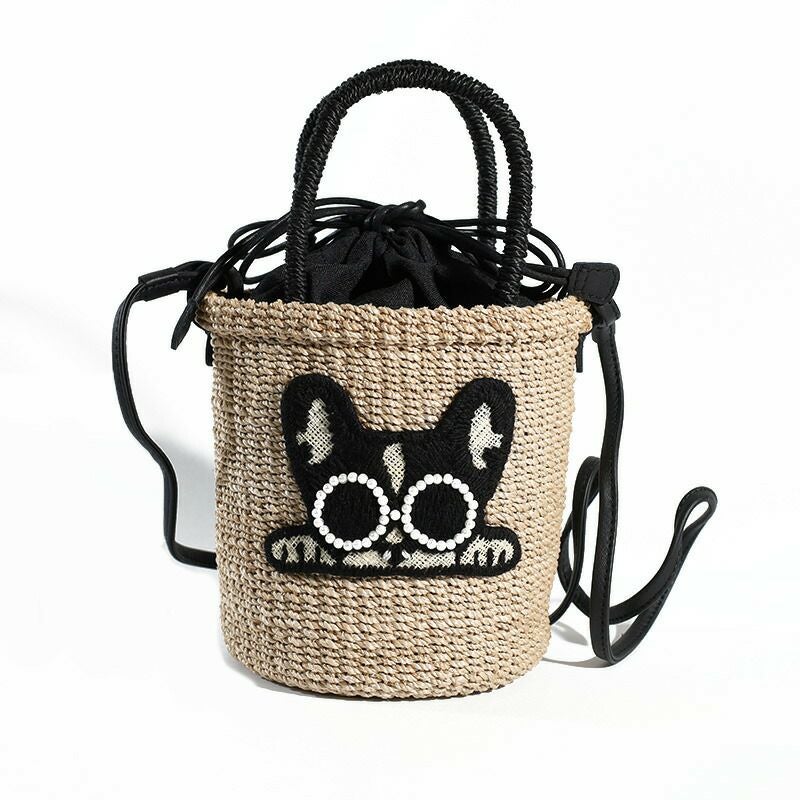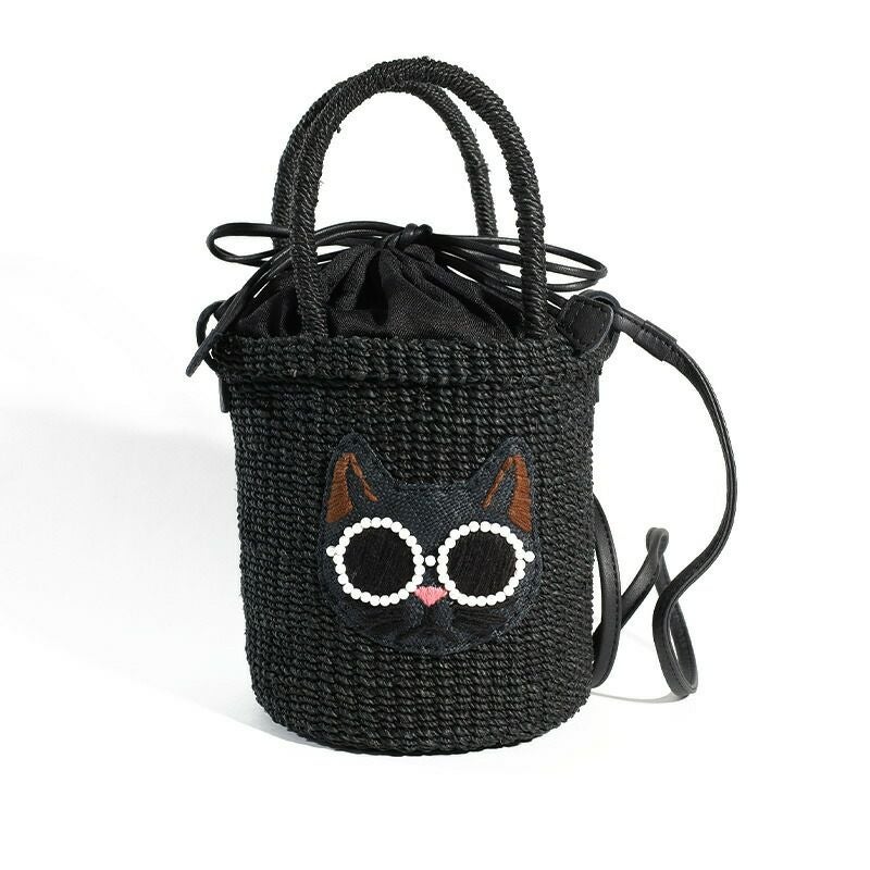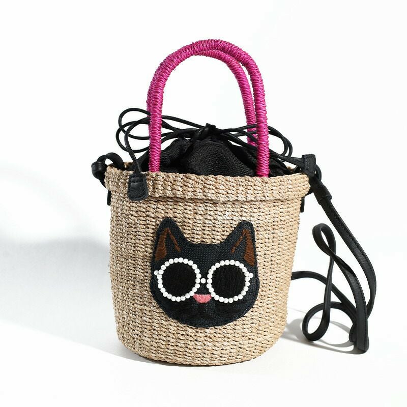 パールサングラスをかけた可愛い動物たちのかごバッグです。