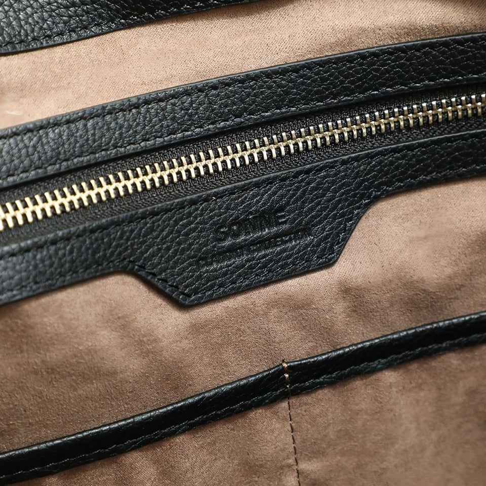 内側にはファスナー付きポケットと複数の小物ポケットを配置。スマートフォンや財布、鍵などを分けて収納でき、バッグの中が散らかりにくく、必要なものをすぐ取り出せます。