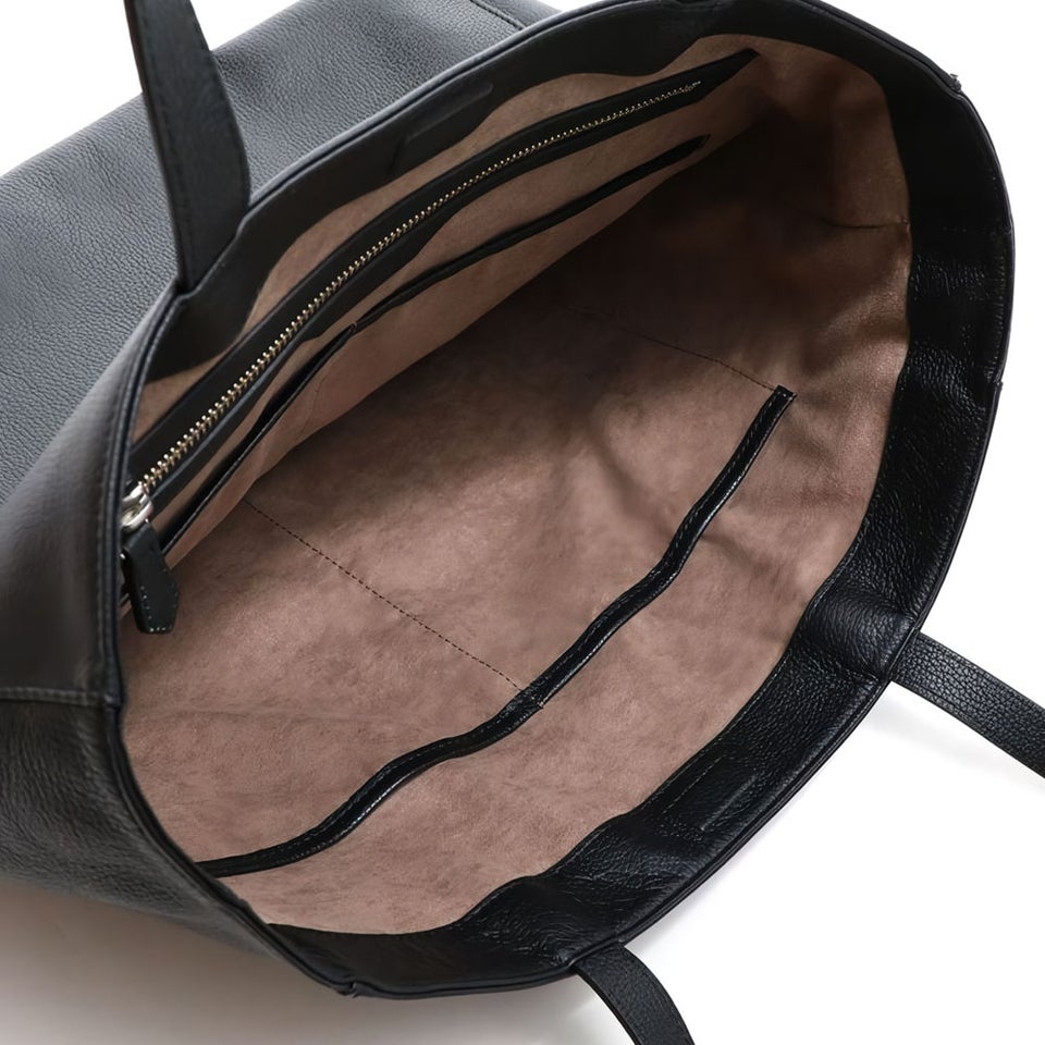 装飾を抑えたミニマルな佇まいで、スタイルを邪魔しない上品なトートバッグ。ビジネスシーンはもちろん、休日のお出かけにも自然になじみ、オンオフ問わず活躍する汎用性の高さが魅力です。