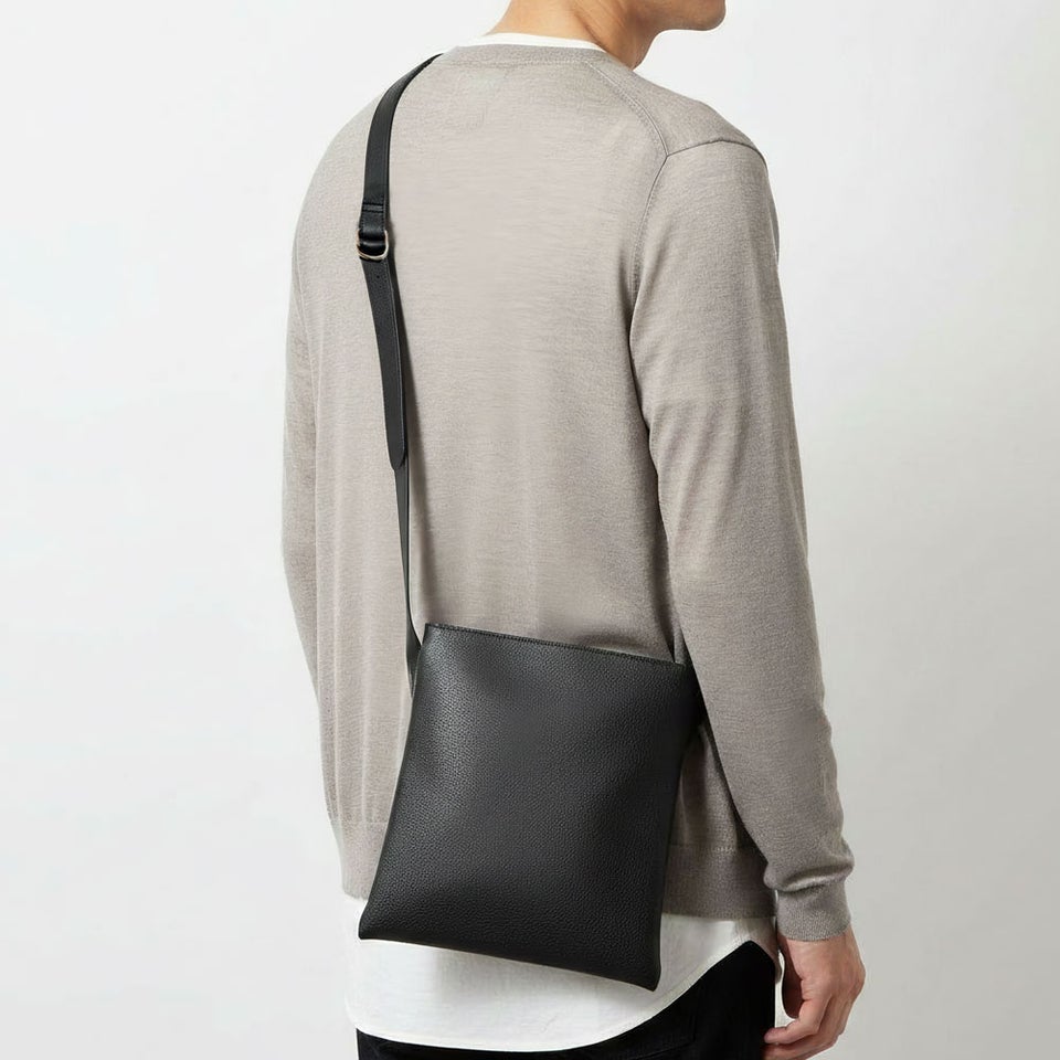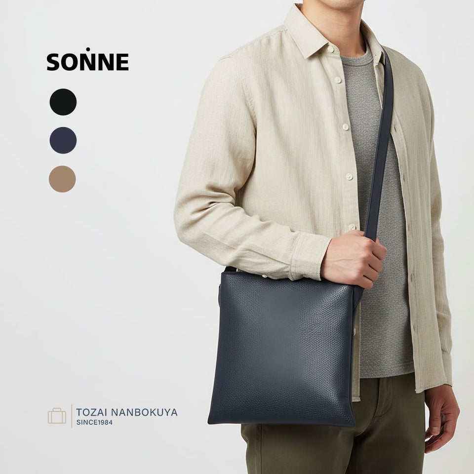 B5下サイズ対応で、長財布やスマートフォン、文庫本などの必需品がすっきり収まる容量。内外にポケットを備え、小物を整理しやすく、薄マチながら使い勝手の良さが光ります。