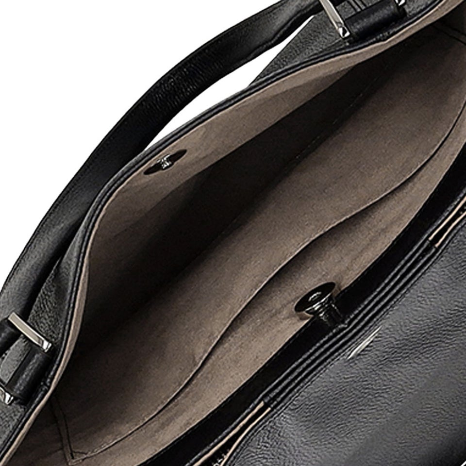 開閉はスナップボタン式で、荷物の出し入れがスムーズ。しっかり閉じられる安心感がありつつ、忙しい通勤時や移動中もストレスなく使用できます。