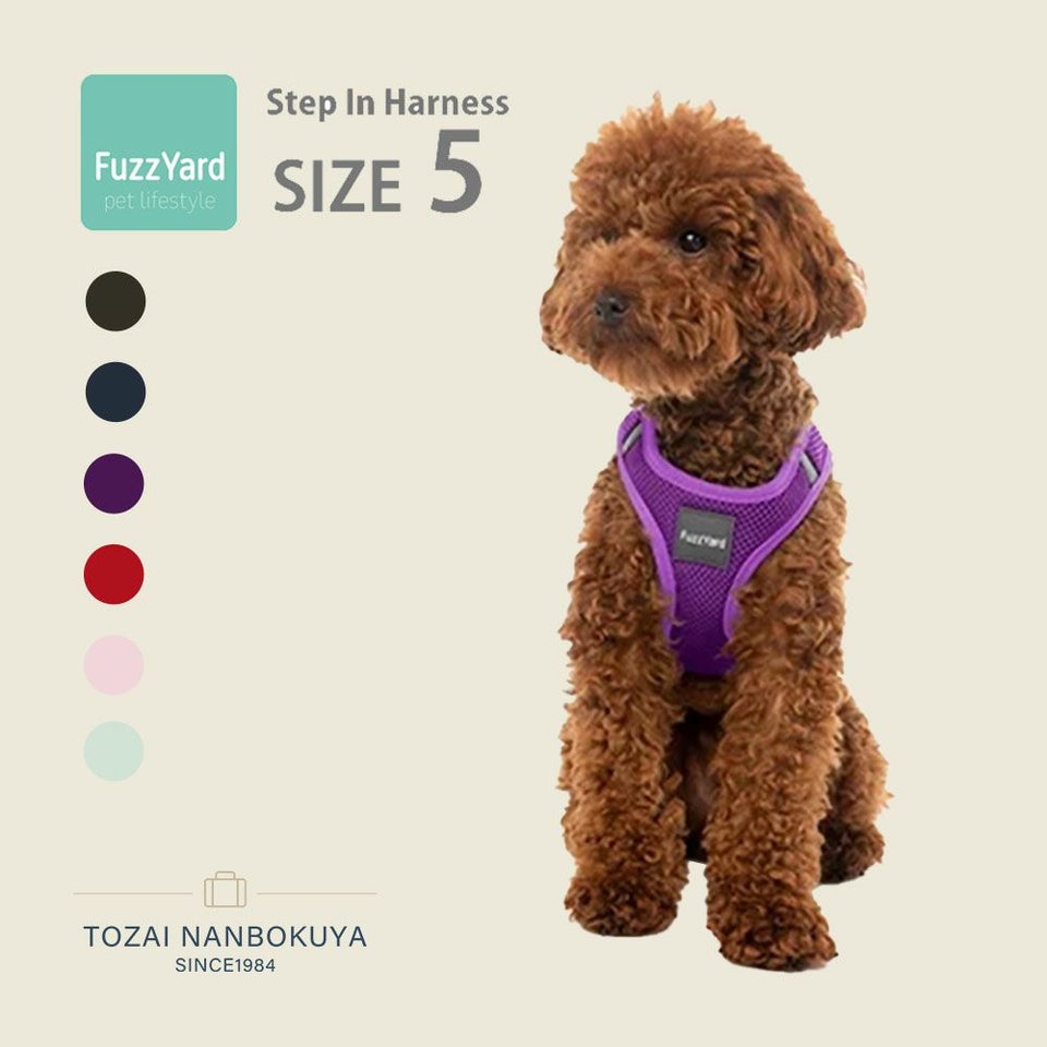 「Step in(ステップイン)」タイプで、足を通すだけの簡単着用。頭を通さないから、被るのが苦手なワンちゃんや首回りがしっかりした犬種にもぴったりです。